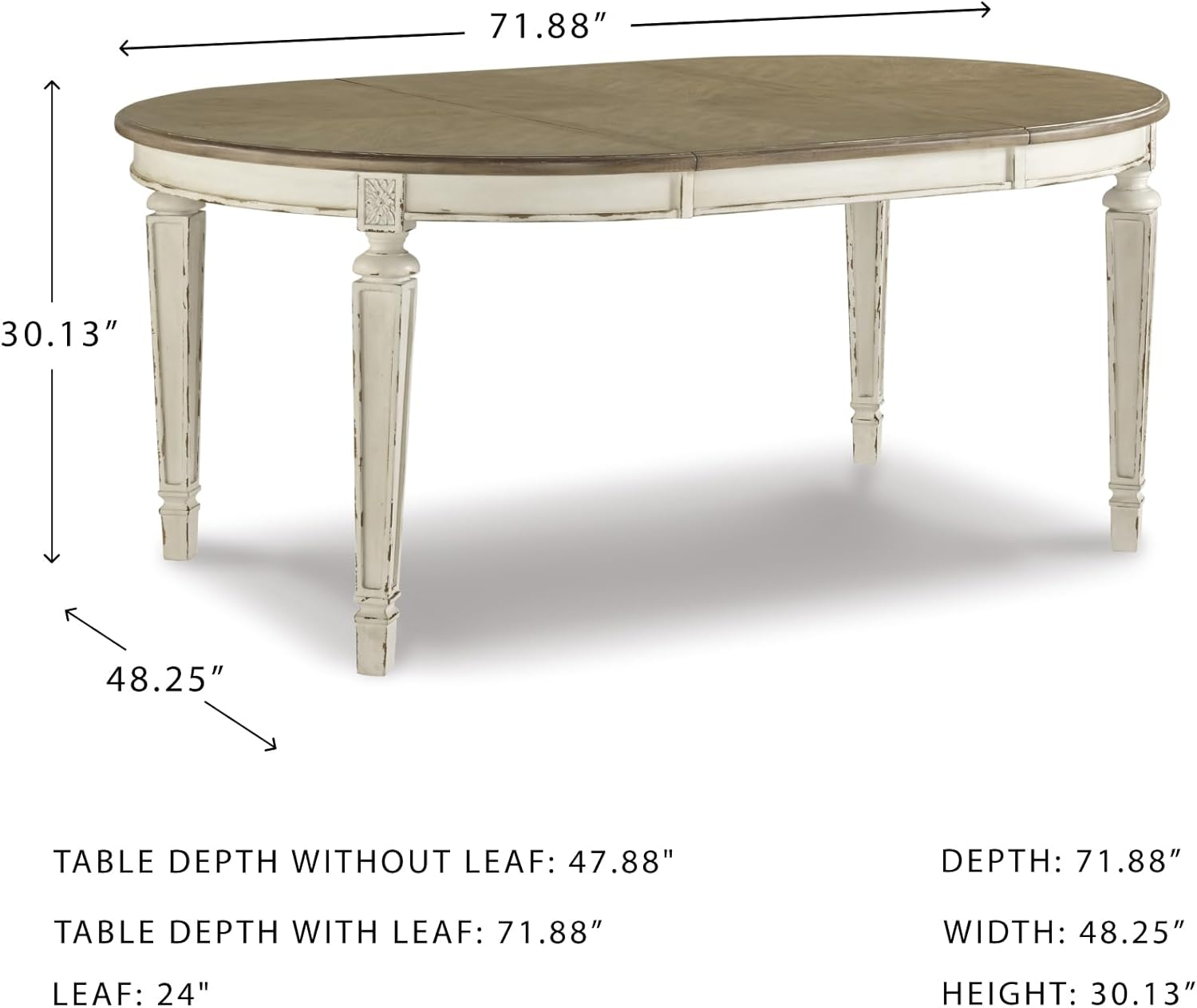 Signature Design by Ashley Realyn Oval Dining Room Extension https://furnishom.com/product/signature-design-by-ashley-realyn-oval-dining-room-extension/?utm_source=rss&utm_medium=rss&utm_campaign=signature-design-by-ashley-realyn-oval-dining-room-extension https://furnishom.com/product/signature-design-by-ashley-realyn-oval-dining-room-extension/#comments Thu, 02 Apr 2026 04:55:45 +0000 https://furnishom.com/product/signature-design-by-ashley-realyn-oval-dining-room-extension-table-seats-6-antiqued-2-tone-finish-wood-distressed-white/ Product Overview The Signature Design by Ashley Realyn Oval Dining Room Extension Table is a beautifully crafted centerpiece that brings timeless French country charm to your home. Designed with both style and practicality in mind, this table seamlessly blends classic aesthetics with modern functionality. Its oval shape promotes comfortable conversation among up to six guests, […]
