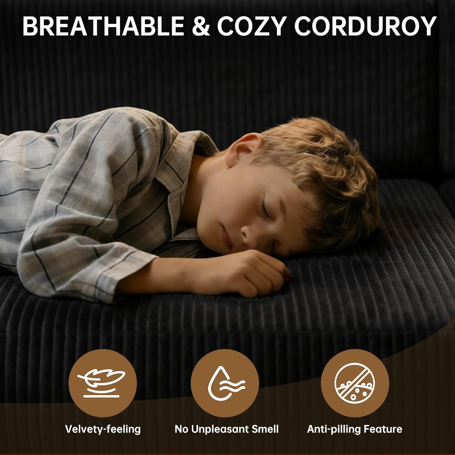 - Premium Corduroy Upholstery: Soft, textured fabric in rich black provides a luxurious feel underfoot and a refined aesthetic that resists everyday wear.