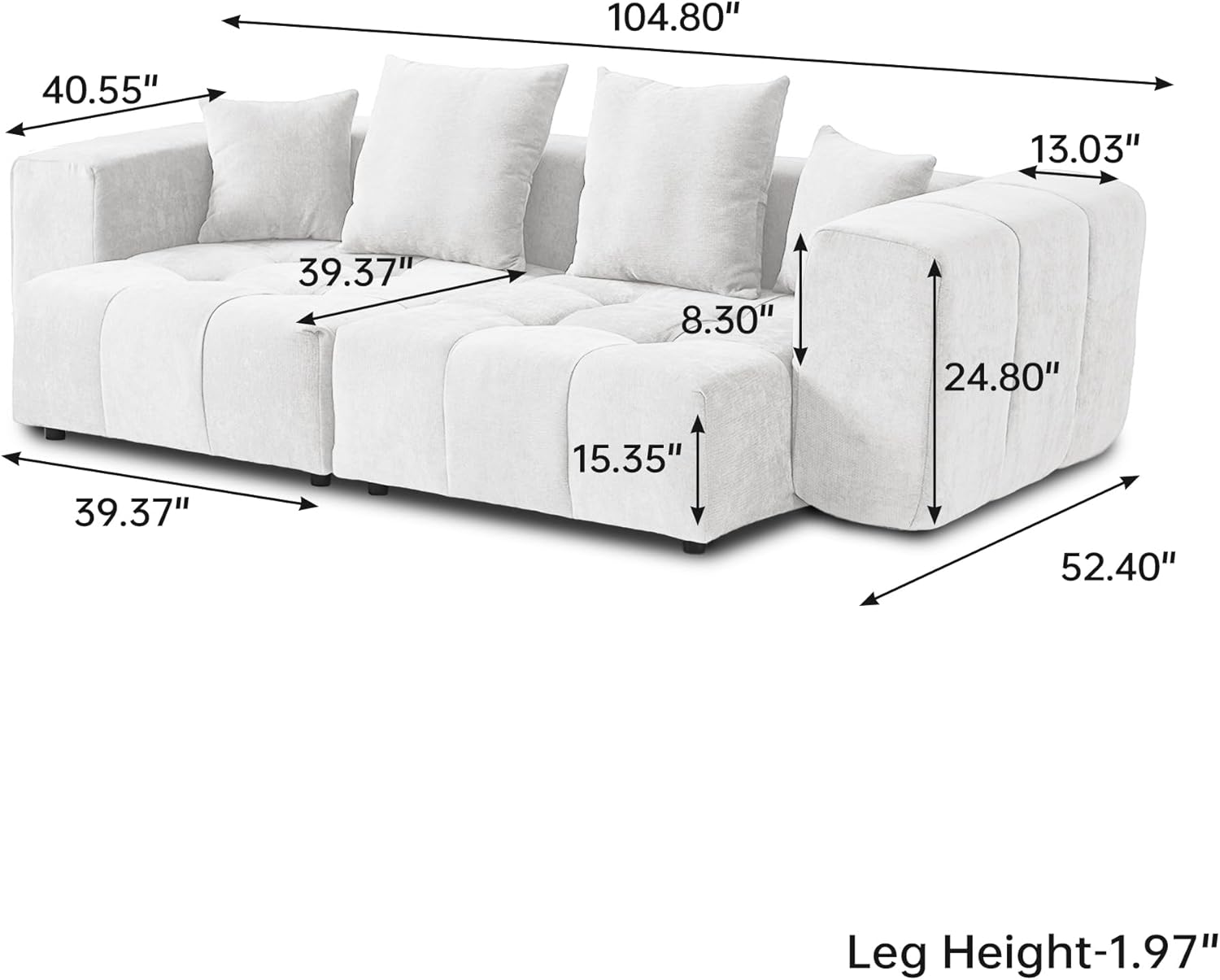 104″ Love Seat Couch, Modular Sectional Sofa Cloud Couch