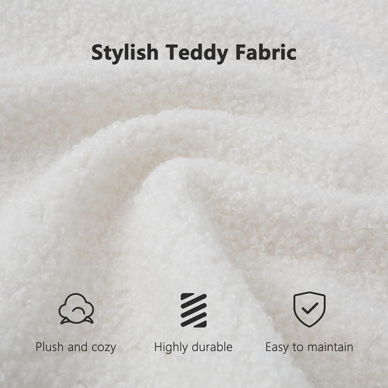 - Premium Teddy Fabric Upholstery: Wrapped in high-quality teddy fabric, the sofa offers a soft, fuzzy texture that feels luxurious to the touch and adds warmth to your space.