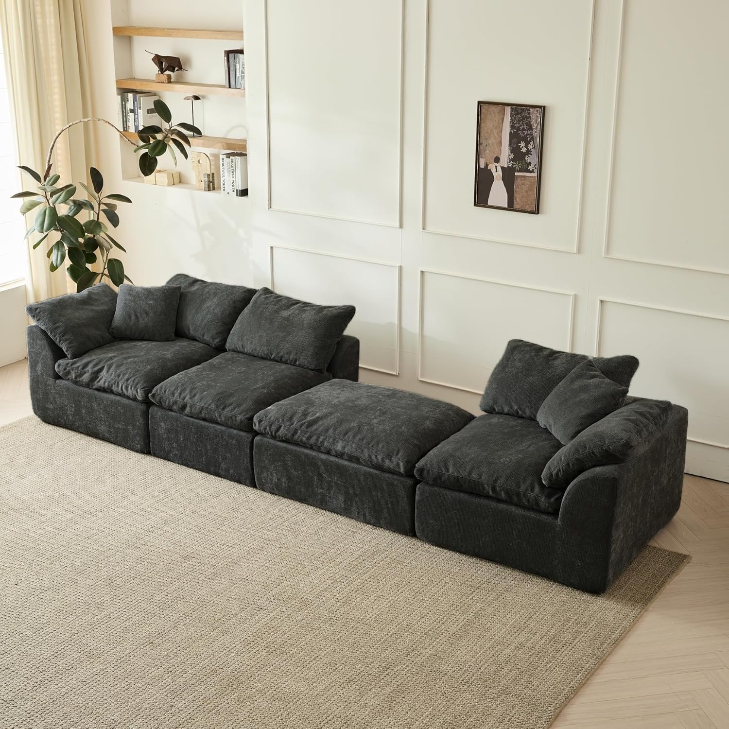 The boneless modular system means you’re not locked into one layout. Need more back support? Rearrange the pieces. Want a chaise extension? Swap positions with the ottoman. This level of customization makes it suitable for evolving household needs without requiring replacement furniture. The neutral black color ensures it blends effortlessly into existing decor schemes—whether paired with light walls and bold accents or integrated into a monochromatic setup.