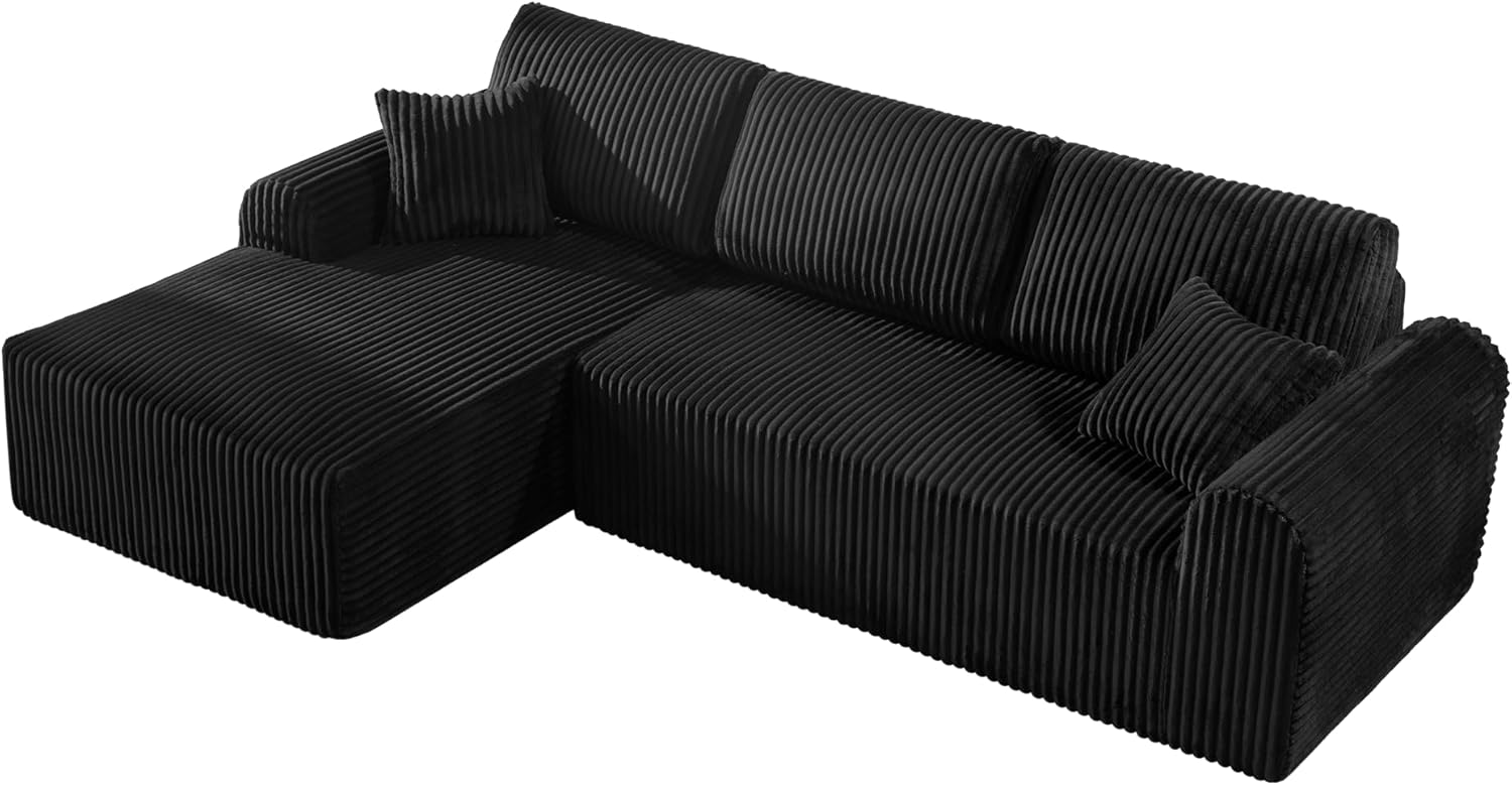 The 109-Inch L-Shaped Left Facing Boneless Corner Sofa is a thoughtfully designed modular sectional couch that combines modern aesthetics with practical functionality. This two-piece sofa system is crafted to fit seamlessly into contemporary living spaces, offering both comfort and style for everyday use. Ideal for apartments, small homes, or open-concept layouts, it maximizes corner space without sacrificing seating capacity. The inclusion of a chaise lounge provides extended lounging options, while the accompanying toss pillow enhances visual appeal and offers additional support when needed. Constructed with durable corduroy upholstery, this sofa delivers a soft yet resilient feel perfect for families, guests, or casual gatherings.