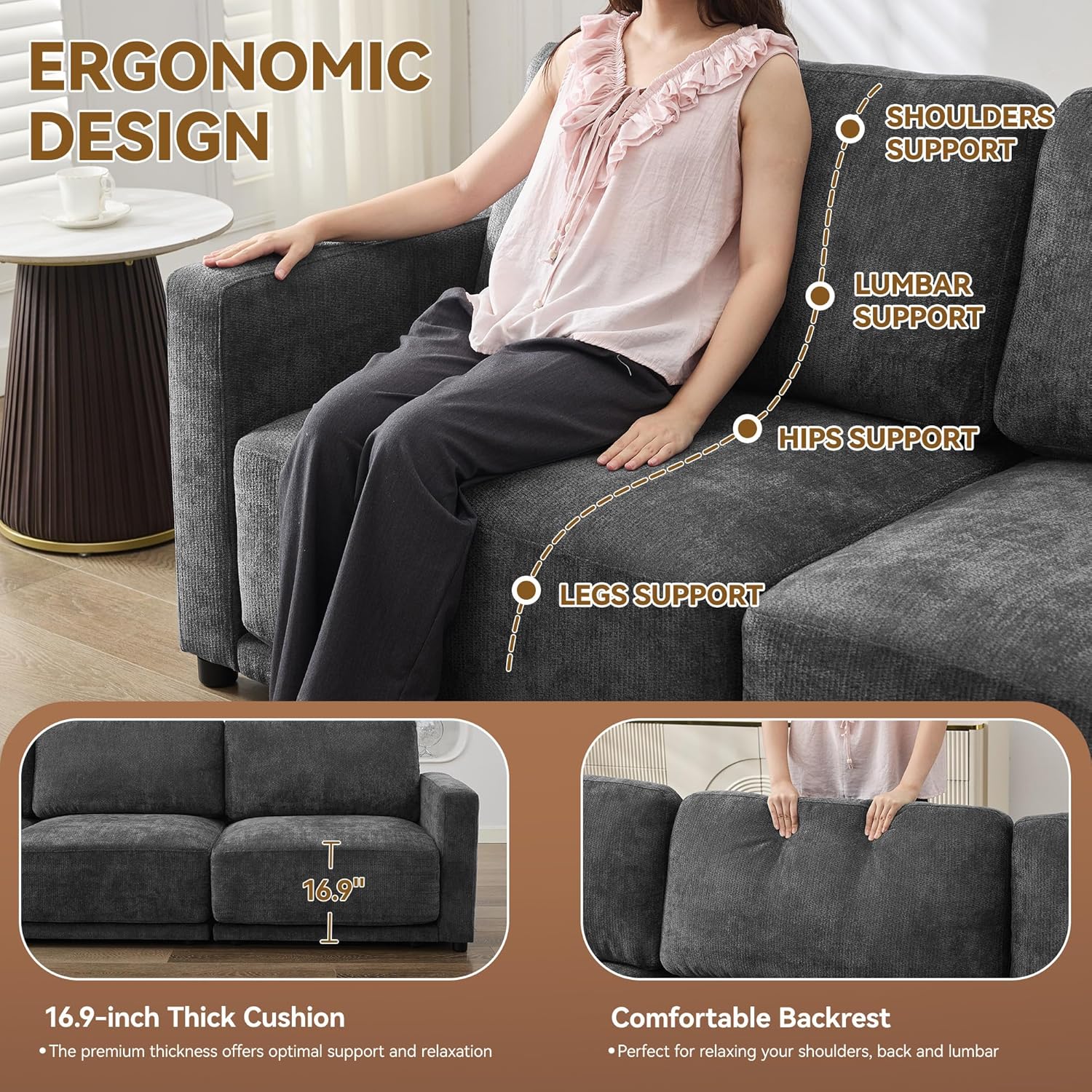 • Premium Chenille Upholstery: Wrapped in luxurious chenille fabric, the sofa offers a soft-to-the-touch finish that’s gentle on skin and resilient against everyday wear. The neutral grey color complements a wide range of interior styles—from contemporary minimalism to rustic chic—making it a timeless addition to any home décor.