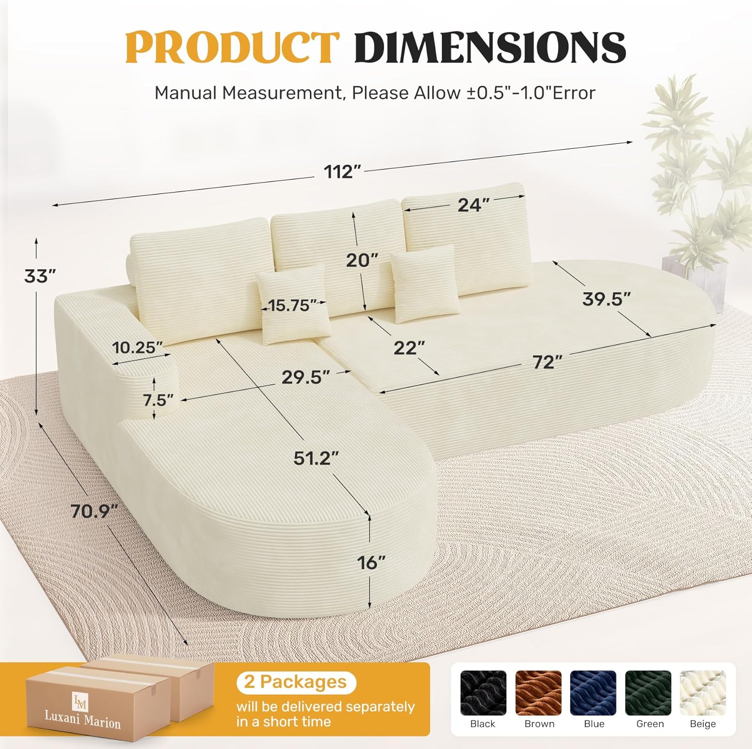 - Memory Foam Compression & Modular Layout: The sofa arrives pre-compressed with high-quality memory foam and assembled into a single, curved modular unit. This innovative approach simplifies delivery—no disassembly required—and ensures consistent shape and support right out of the box. Its smooth, continuous curve fits perfectly in open living areas, L-shaped corners, or along walls, maximizing space efficiency.