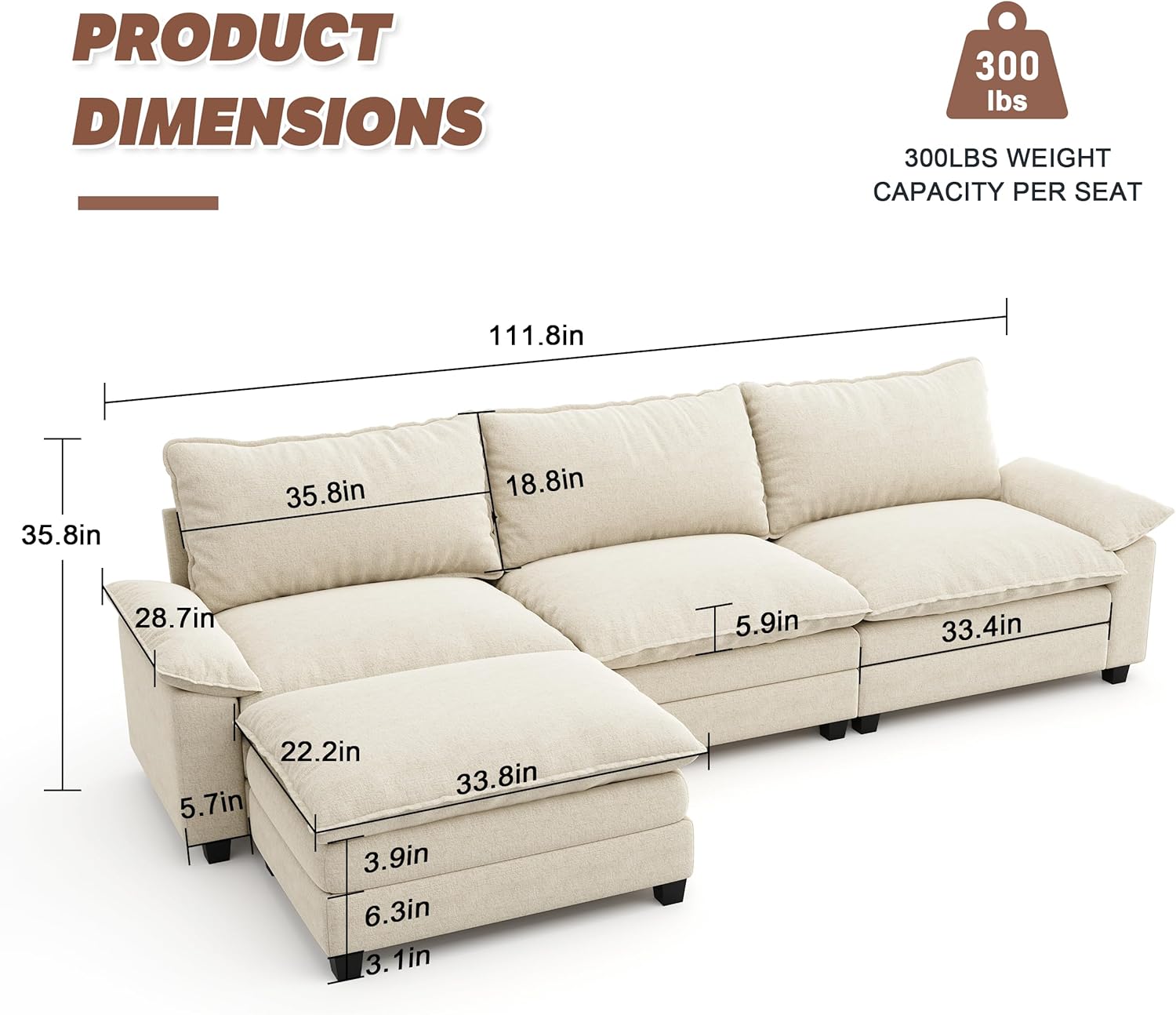 The Howjoe 114 Inch Modular Couch Sectionals are engineered to transform any living space into a flexible, stylish, and deeply comfortable seating solution. Designed with modern lifestyles in mind, this modular sofa system adapts seamlessly to your environment—whether you’re hosting friends, relaxing after a long day, or rearranging your room layout for a fresh look. With its generous 114-inch length and multiple configuration options, the Howjoe sectional grows with your needs, offering everything from compact L-shapes to expansive U-shaped setups. Each piece is thoughtfully designed to blend functionality with aesthetic appeal, making it ideal for apartments, open-plan homes, or multi-functional rooms where space optimization is key.
