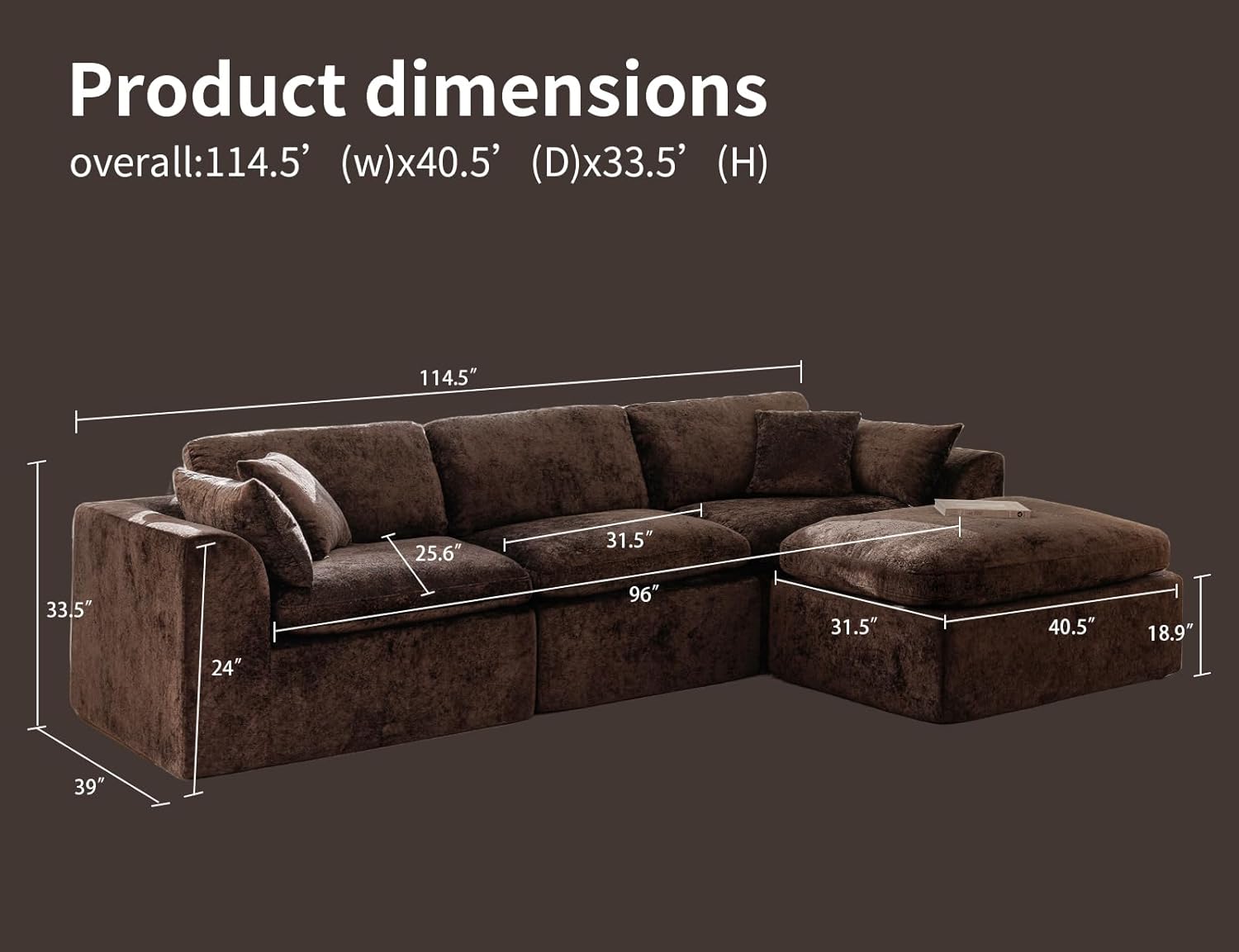 The 115″ Modular Sectional Sofa redefines modern living with its cloud-inspired design and deep, inviting comfort. This L-shaped sectional couch combines a spacious 3-seater configuration with a matching ottoman, creating an ideal relaxation zone for your living room. Engineered with high-resilience foam and soft, plush filling, every seat delivers a supportive yet luxurious sitting experience—perfect for unwinding after a long day or hosting guests in style. With no assembly required, this modular sofa arrives fully assembled and ready to use, offering effortless elegance and convenience from the moment it’s delivered.