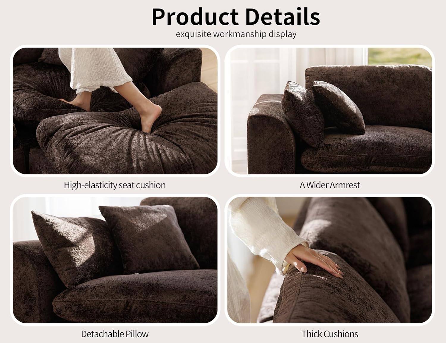 - Soft, Supportive Cushions: Each cushion is crafted using high-resilience foam layered with plush filling, ensuring long-lasting comfort without sagging. The result is a cloud-like feel that maintains its shape over time, offering consistent support and softness day after day.