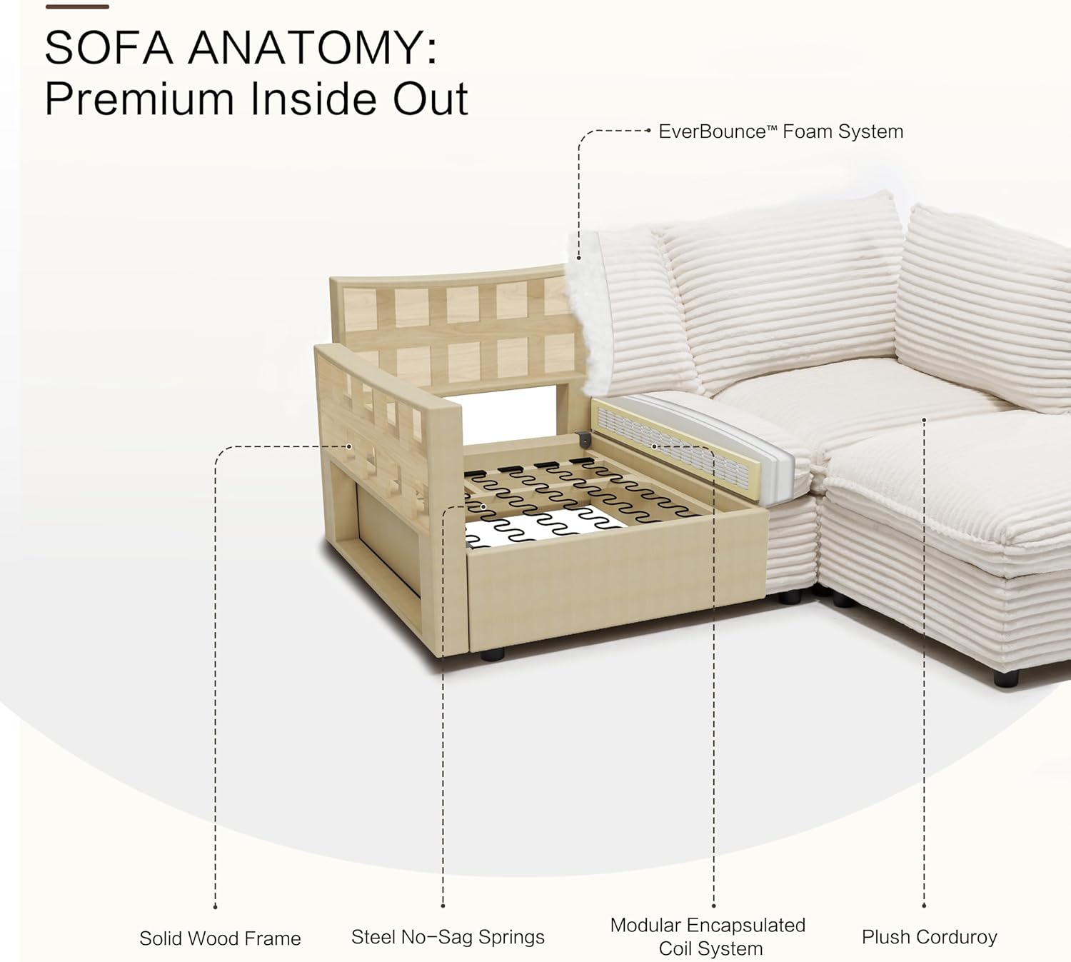 • Flexible Modular Design: Each 29.5″ wide seat module can be rearranged without tools—transform your sofa from a spacious U-shape to a compact L-shape in minutes to suit any room layout or occasion.