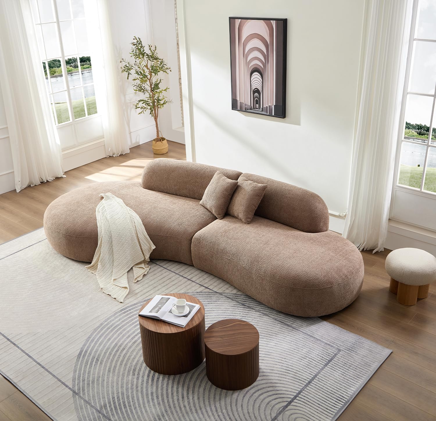 135.4″ Curved Sofa Modern Couch, Luxury Couch Camel,