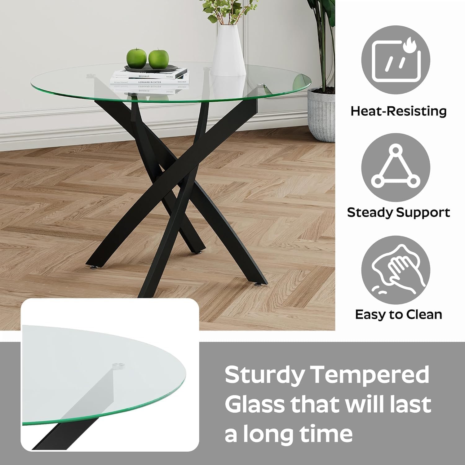 • Elegant Tempered Glass Top: The centerpiece of this dining set is a high-quality tempered glass surface known for its strength and resistance to scratches and impacts. Its smooth, reflective finish not only adds a touch of luxury but also helps brighten the surrounding space by bouncing light throughout the room.