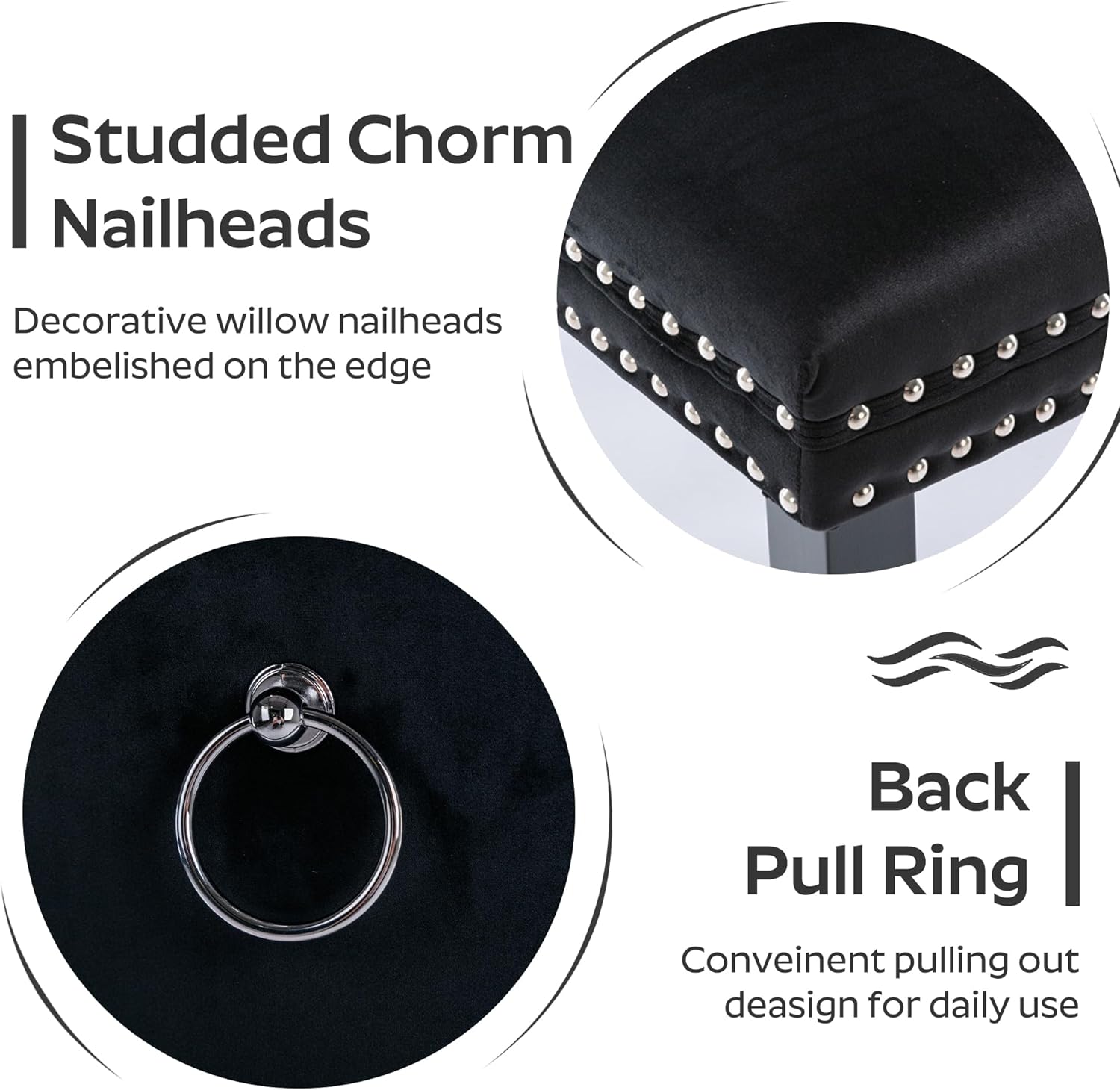 • Color Scheme: Black (table legs and chair frames), with contrasting velvet chair seats