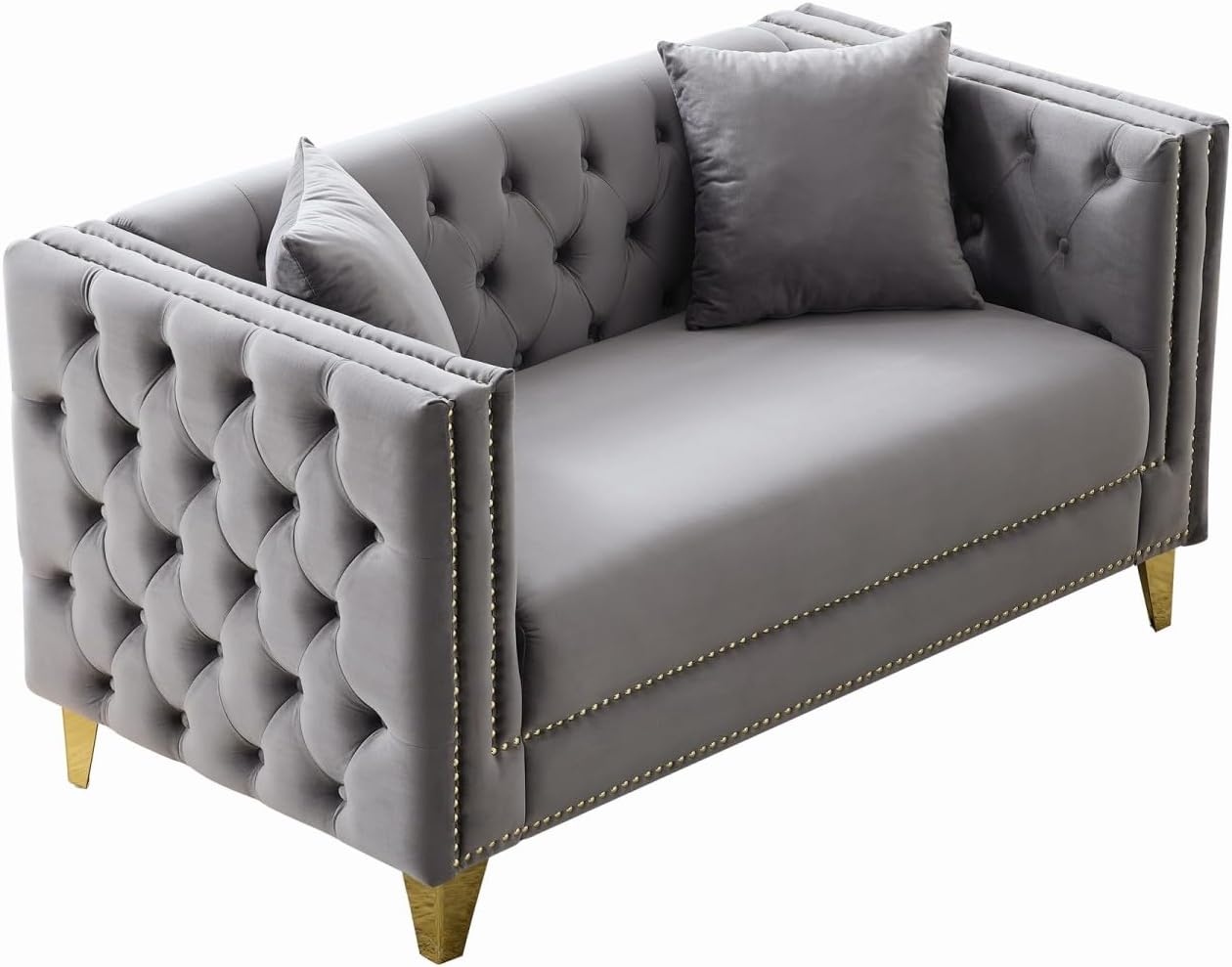 The package includes one 58″ Chesterfield Velvet Sofa in Grey. No additional cushions, throws, or decorative accessories are included unless explicitly mentioned in separate product details. Assembly requirements may apply; customers should check packaging contents for instructions or included tools. Please note that exact measurements may vary slightly due to manufacturing tolerances.