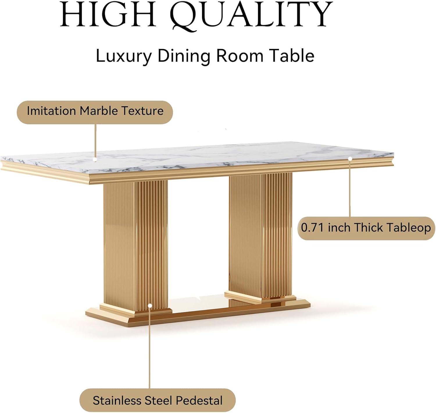 • Luxurious Faux Marble Top: Crafted from high-quality faux marble, the 0.71-inch thick surface delivers the elegant veining and smooth texture of natural stone, while being more resistant to stains, scratches, and heat damage compared to real marble.
