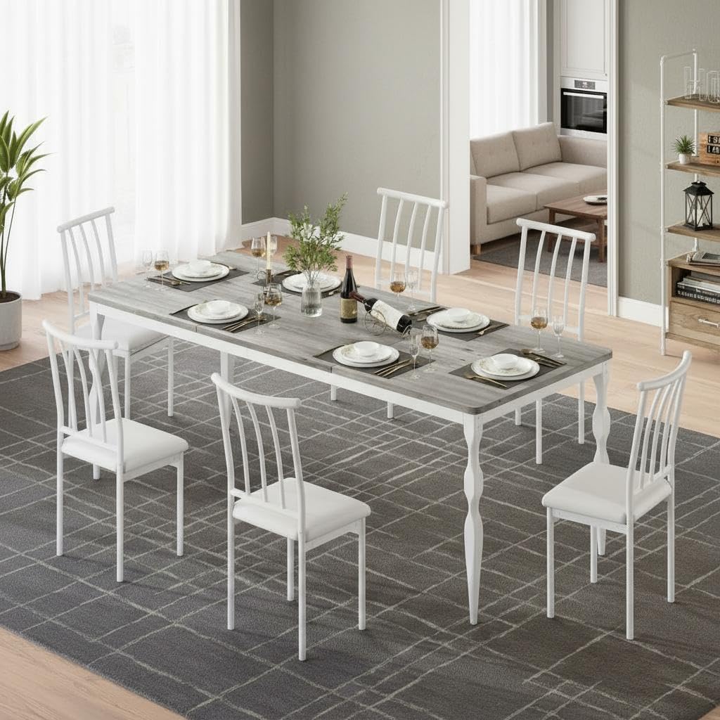The gray and white color combination adds a clean, timeless look that fits well in various interior styles. With its generous size and robust construction, this table accommodates large groups without feeling crowded, ensuring everyone has enough space to dine comfortably. It stands out as a versatile centerpiece that enhances both the visual appeal and usability of any dining area.
