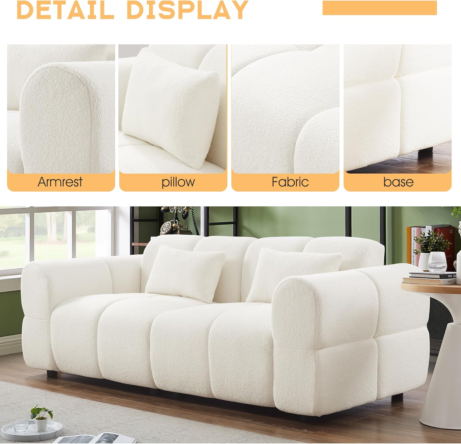 80″ Modern Sofa Couch, Comfy Deep Seat Teddy Cloud Sofa,