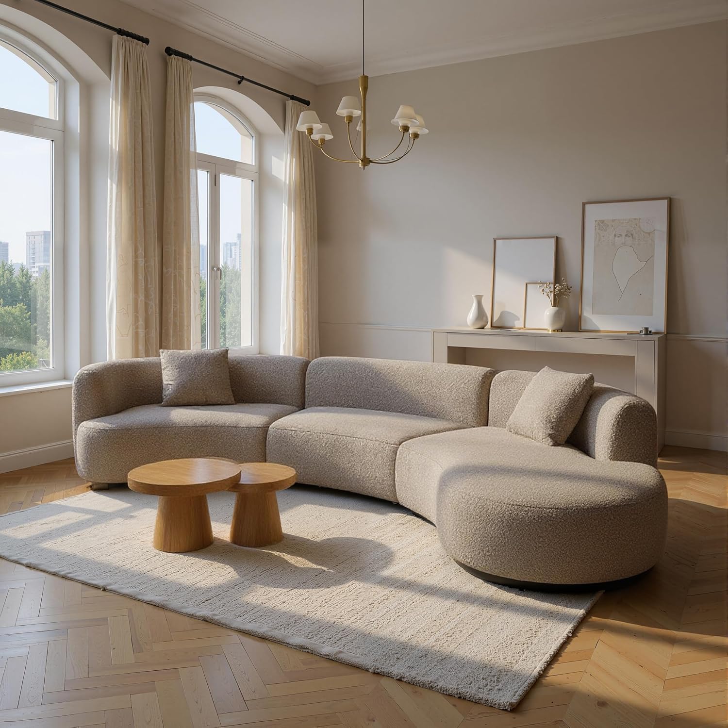 Crafted with attention to detail, this sofa features plush cushions and a supportive wood frame that ensure years of reliable use. The boucle fabric not only feels luxurious against the skin but also resists wear and pilling, maintaining its inviting texture over time. With generous seat depth and thoughtfully positioned pillows, every aspect of the couch is designed to support comfort during extended sitting periods. From reading in your favorite chair to lounging with family, this sectional adapts seamlessly to a variety of daily routines.