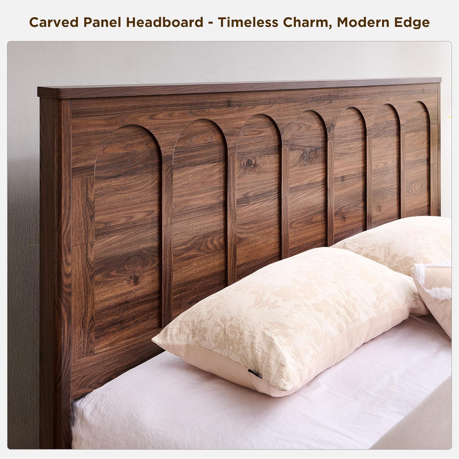 - Practical Footboard with Arched Relief Design: The footboard isn’t just decorative; it features an elegantly carved arch that adds visual sophistication while preventing the mattress from shifting, tilting, or sliding during movement. This ensures consistent alignment and prolonged mattress life.