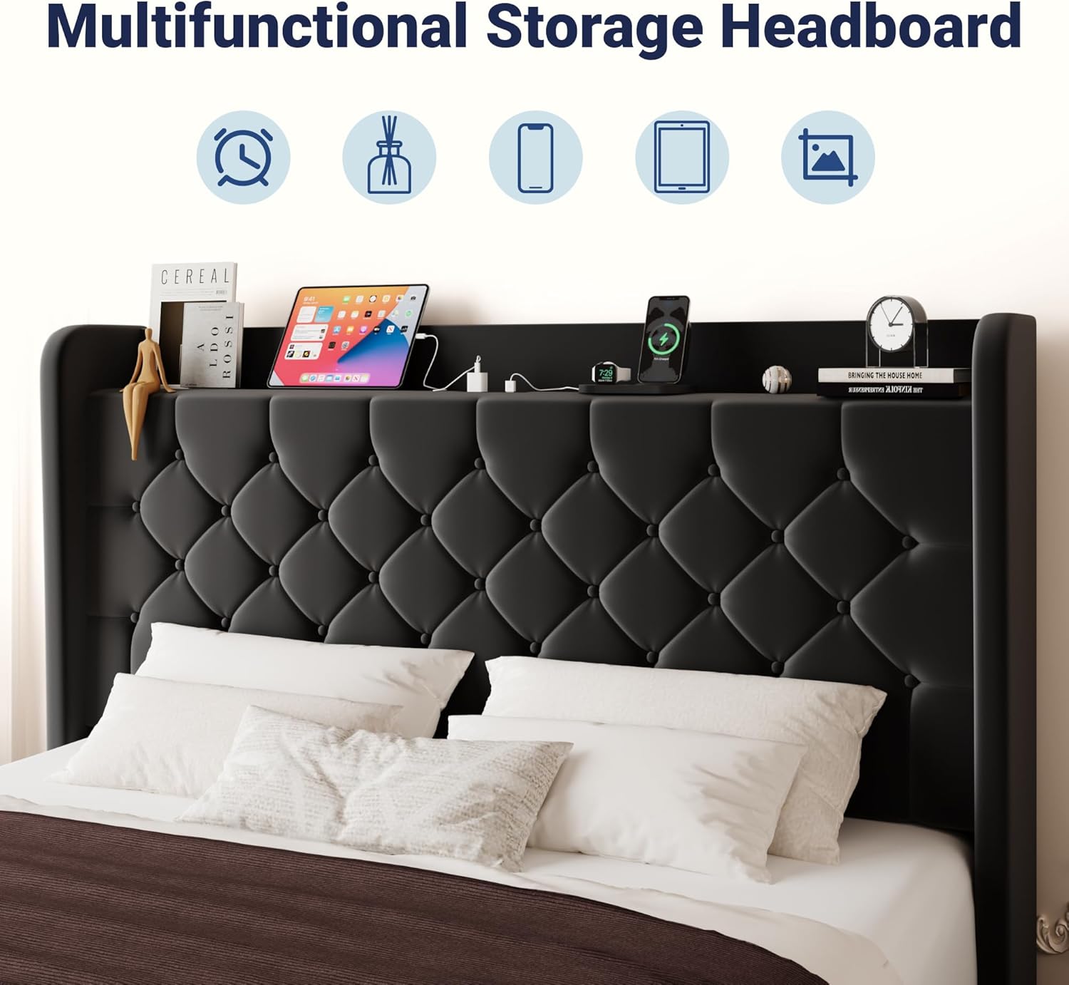 Allewie King Size Bed Frame, Storage Headboard with Charging