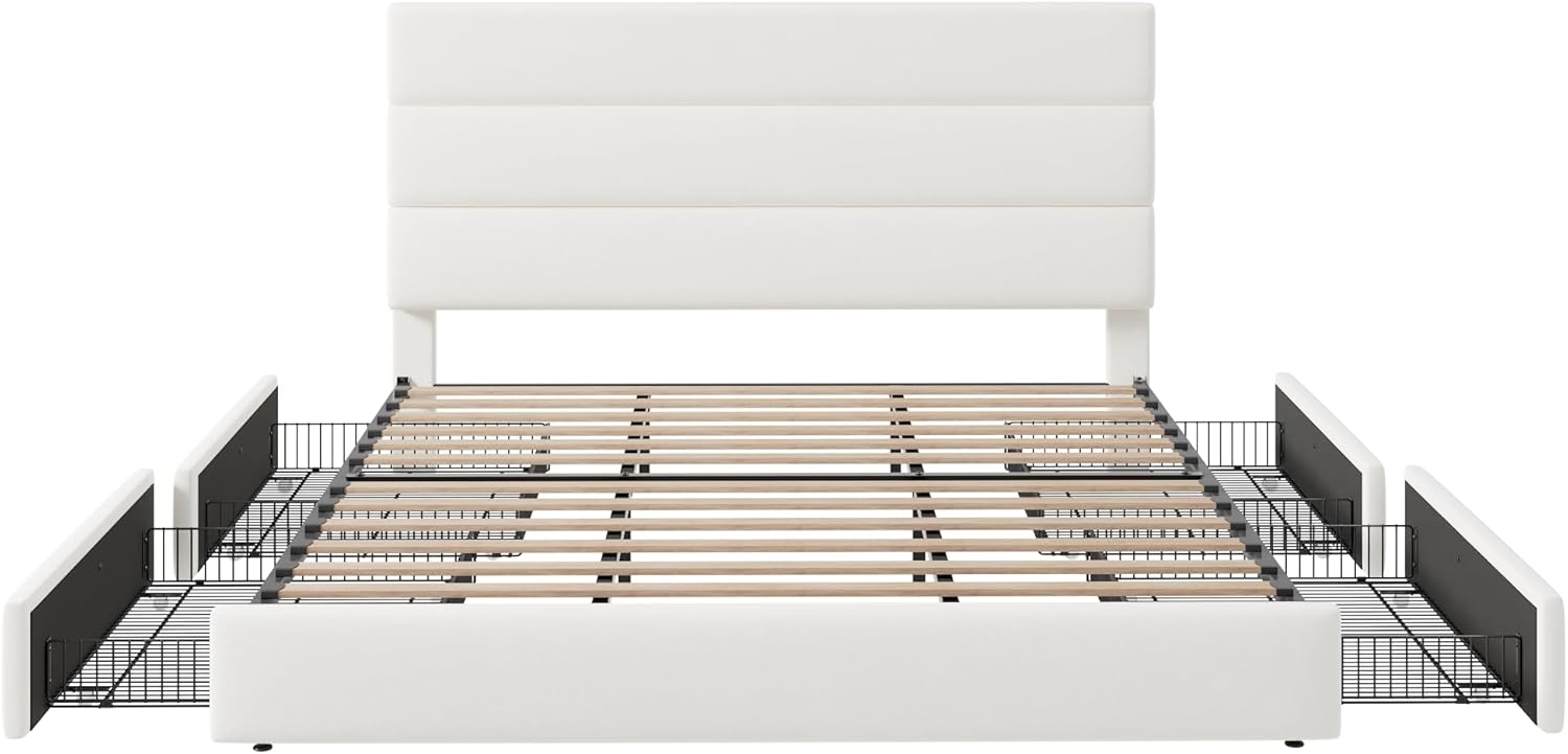 Allewie Modern King Size Platform Bed Frame with 4 Storage