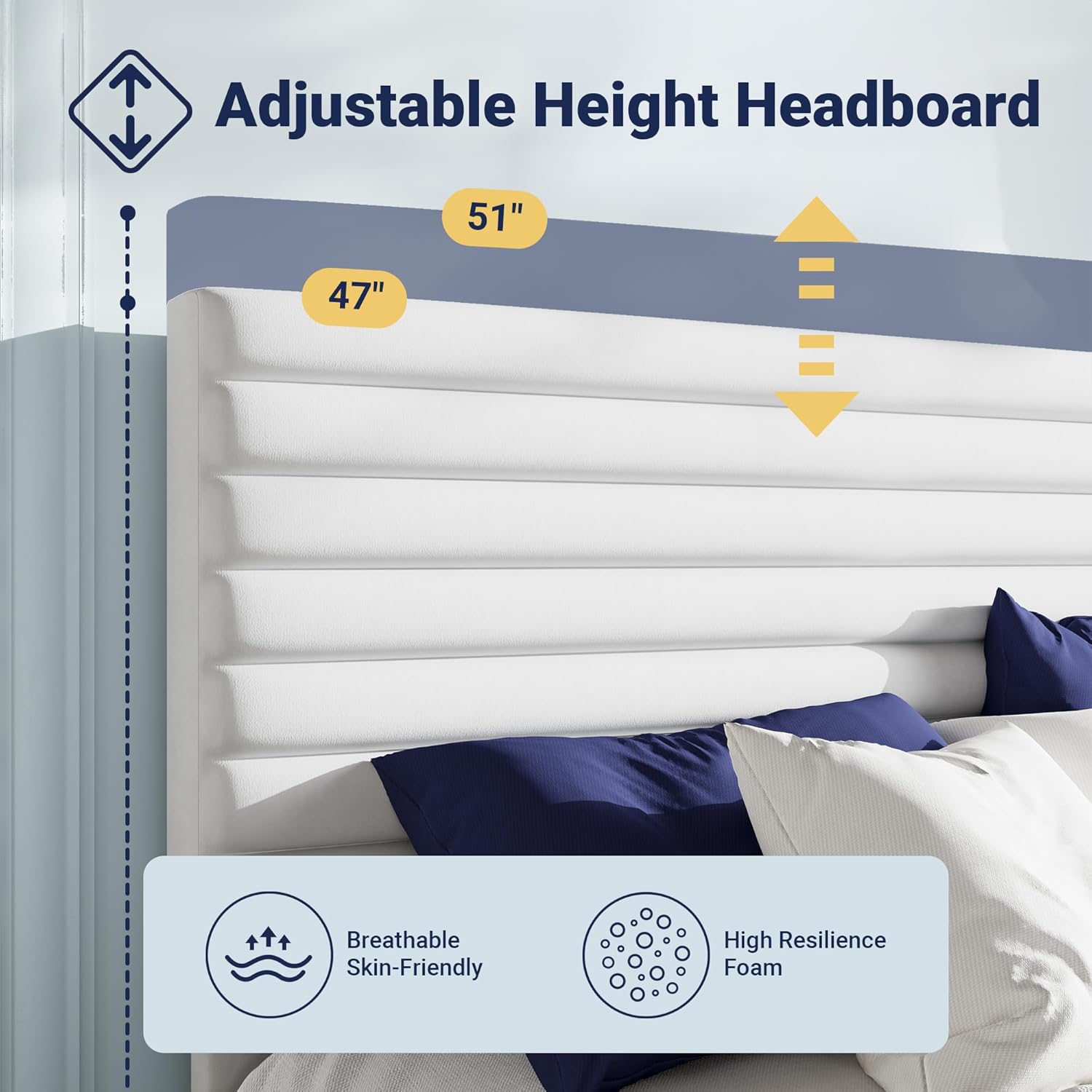 - Adjustable Headboard Design: The vertical-adjustable headboard accommodates mattresses ranging from standard to thicker models, ensuring consistent support and alignment across different bedding setups.