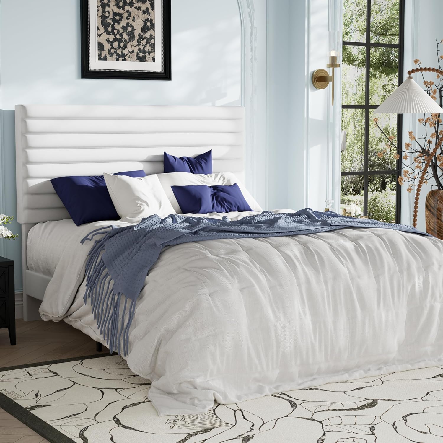 The Allewie Queen Bed Frame elevates your bedroom with its sophisticated blend of style, comfort, and practical functionality. Crafted from premium velvet upholstery, this platform bed features a sleek horizontal channel design that adds depth and visual interest to any room decor. Its adjustable headboard offers customizable height options—ranging from 41.5 to 46.5 inches—ensuring a perfect fit for various mattress thicknesses without compromising support or stability. Engineered with durable wood slats and reinforced steel side rails, the frame delivers robust performance while eliminating the need for a box spring. Ideal for modern homes, guest rooms, or compact spaces, this noise-free bed combines elegant aesthetics with reliable construction for everyday use.