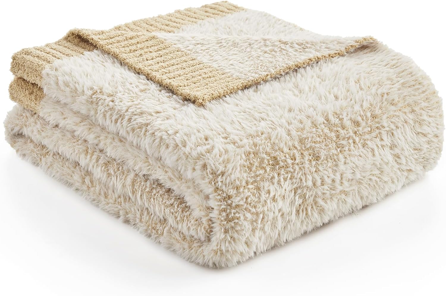 Amélie Home Soft Feather Yarn Throw Blanket for Couch, Lightweight Double Sided Faux Fur Knit Blanket, Cozy Fluffy Blanket for Sofa Chair Bed, Washable, Warm, Travel, 50 x 60 in, Heather Beige