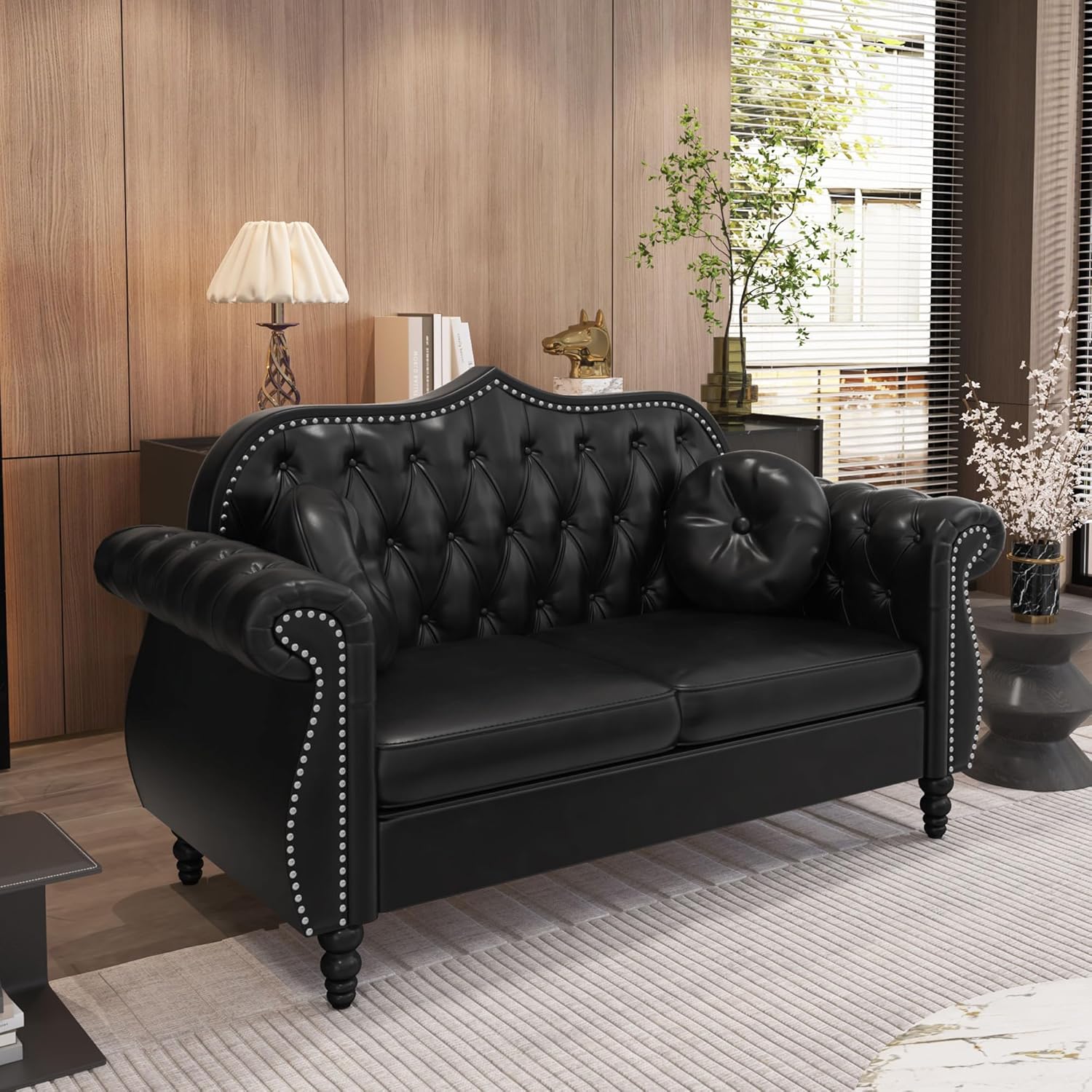 • Classic Chesterfield Design: Authentically styled with deep button tufting, elegant rolled arms, and decorative nailhead detailing, this sofa brings a touch of vintage luxury to your home. Its iconic silhouette complements both traditional and modern decor themes, making it a versatile centerpiece for your living room or bedroom.
