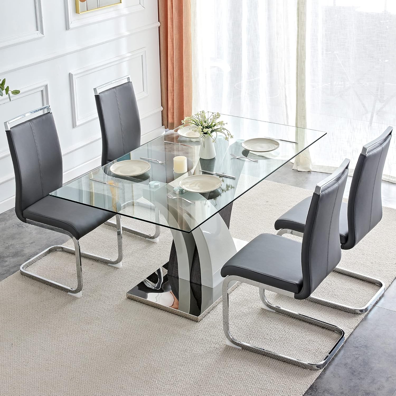 Maintenance is straightforward: wipe the glass top with a damp cloth to remove crumbs or spills, and gently clean the chair seats with mild soap and water. Avoid harsh chemicals or abrasive sponges to preserve the PU leather finish over time. With proper care, this dining set maintains its polished appearance year after year.