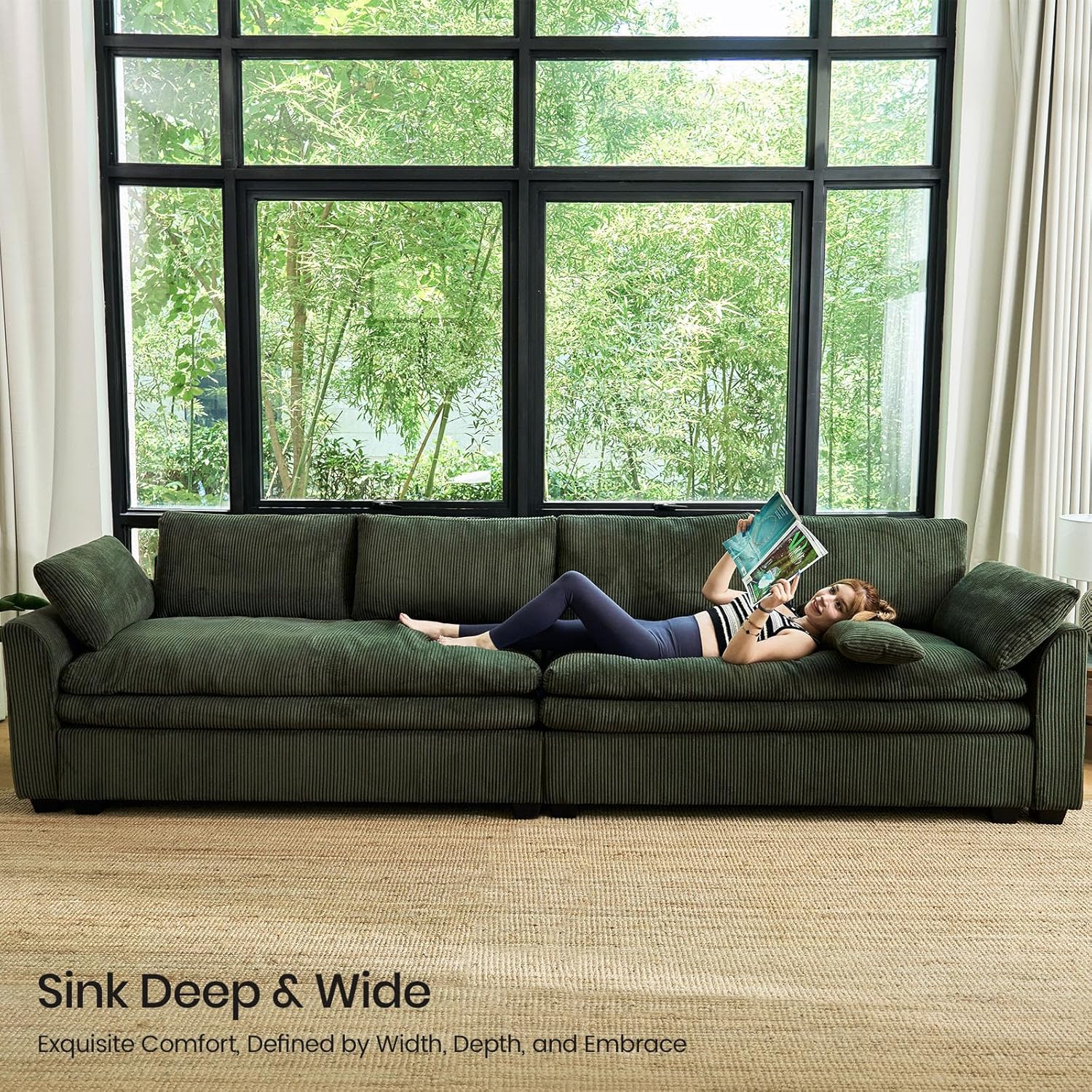 The Belffin Large Modular Sectional Sofa redefines comfort and adaptability in modern living spaces. Designed with both style and function in mind, this 104-inch L-shaped corduroy couch combines deep seating, plush materials, and flexible configuration to suit any home environment—from cozy apartments to spacious living rooms. Whether you’re hosting friends, relaxing after a long day, or simply curling up with a good book, this sofa delivers lasting comfort without compromising on durability or aesthetic appeal. Its vibrant green corduroy fabric adds a refreshing pop of color while maintaining practicality for everyday use.