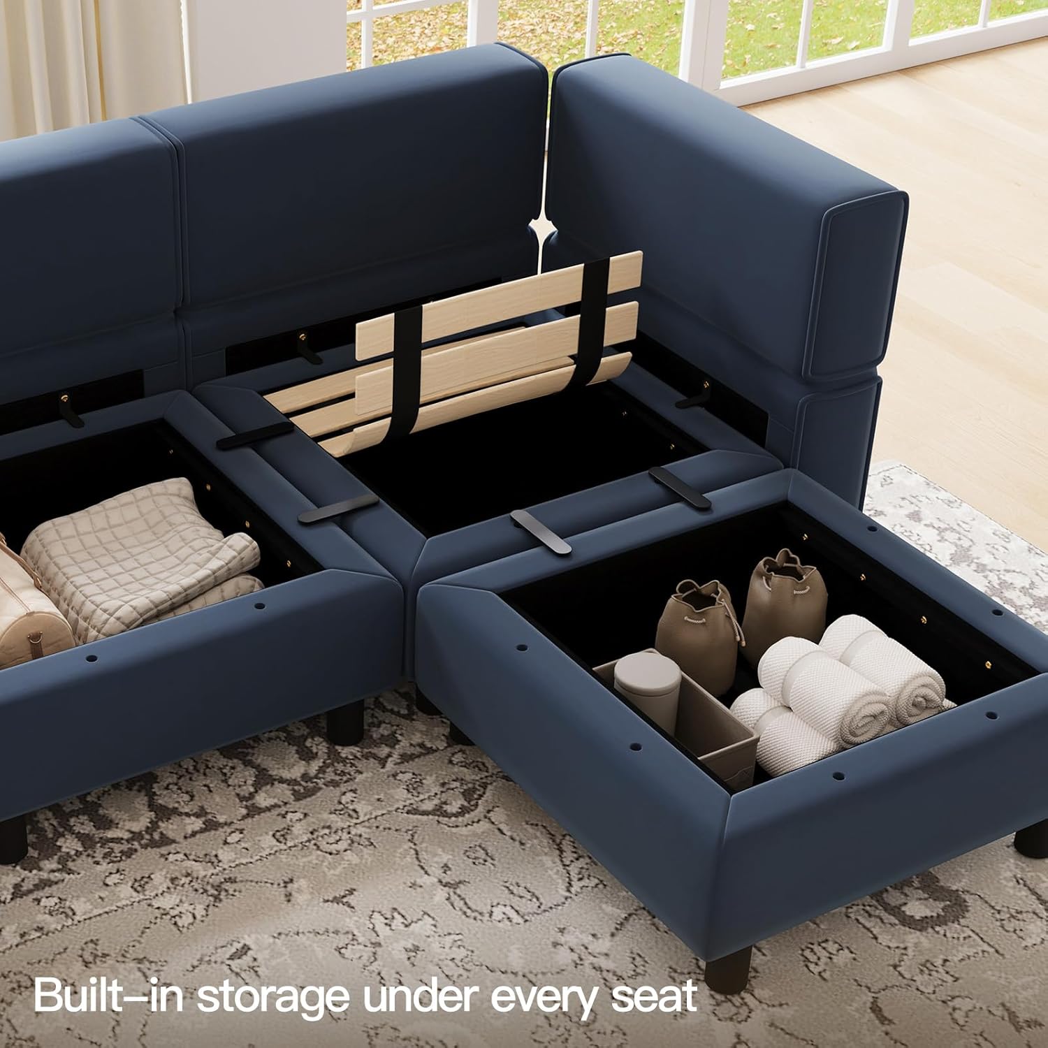 The Belffin Modular Sectional Sofa Couch is a versatile and stylish seating solution designed for modern living spaces. This L-shaped sectional features reversible chaises, velvet upholstery, and a free combination design that allows you to arrange the individual modules into various configurations—such as an oversized L-shape, cozy U-shape, or even a sleeper sofa with ottomans. Ideal for apartments, family rooms, or entertainment areas, it blends comfort, functionality, and minimalist elegance. With interchangeable and foldable armrests and backrests, this sofa adapts to your preferred lounging style, whether you’re relaxing upright or reclining at up to 135 degrees. Its pet-friendly velvet fabric resists claws and makes cleanup effortless, while dense foam padding and a pocket coil spring system ensure lasting comfort.