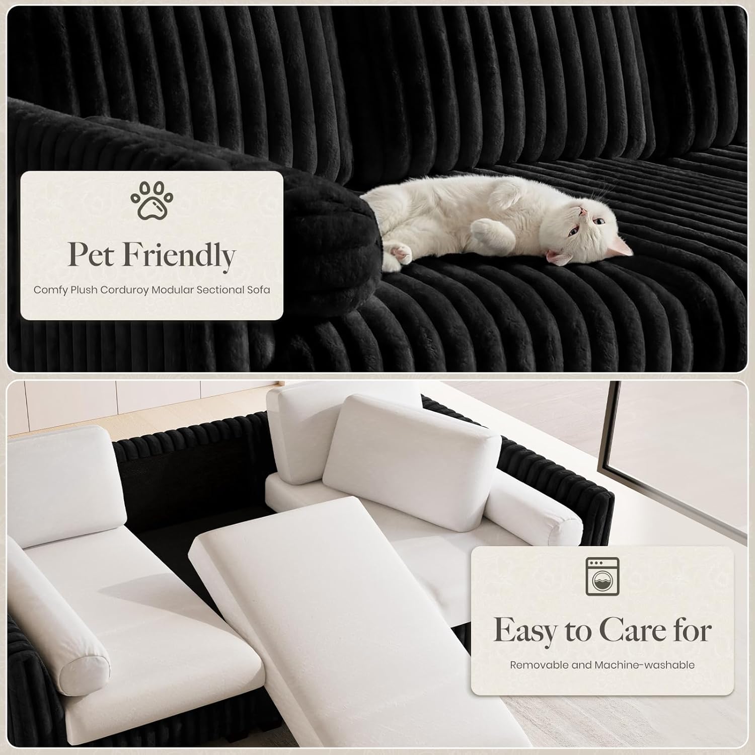 • Luxurious Plush Corduroy Fabric: Crafted from premium corduroy, the sofa offers a rich, soft texture that invites you to sink into comfort. The durable yet velvety material enhances tactile pleasure while resisting everyday wear, ensuring long-lasting beauty and performance.