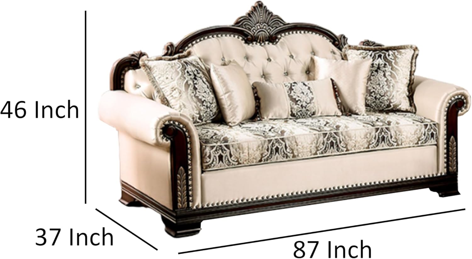 • Design Elements: Button-tufted back, rolled arms, nailhead detailing, carved scrollwork