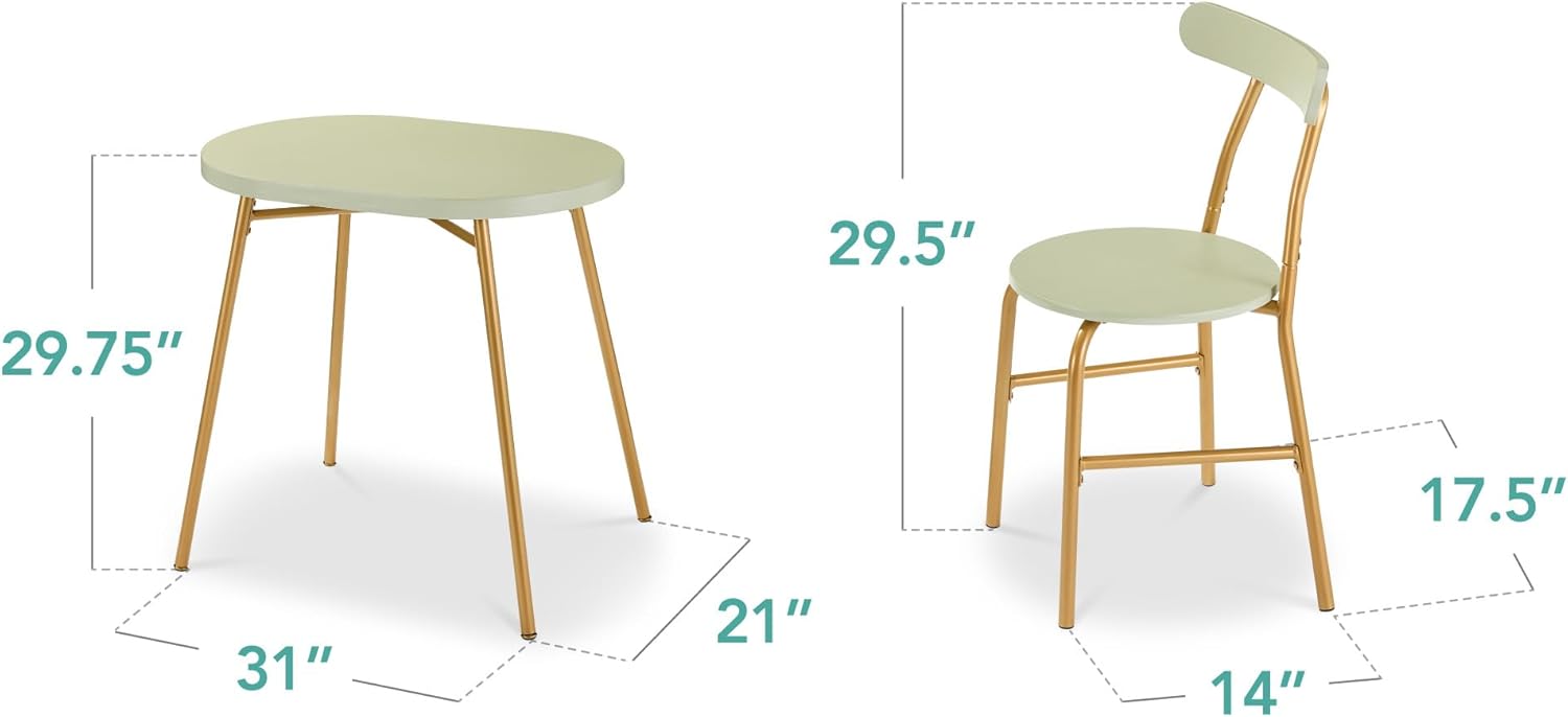This 3-piece oval dining set is thoughtfully designed to bring modern elegance and practical functionality to small living spaces. Perfect for apartments, studios, compact kitchens, or dorm rooms, the set includes one sleek oval table and two matching chairs, offering an intimate yet stylish solution for everyday meals or casual gatherings. The refined sage green finish paired with gleaming gold metal frames creates a contemporary look that complements modern interiors while maximizing both comfort and space efficiency.