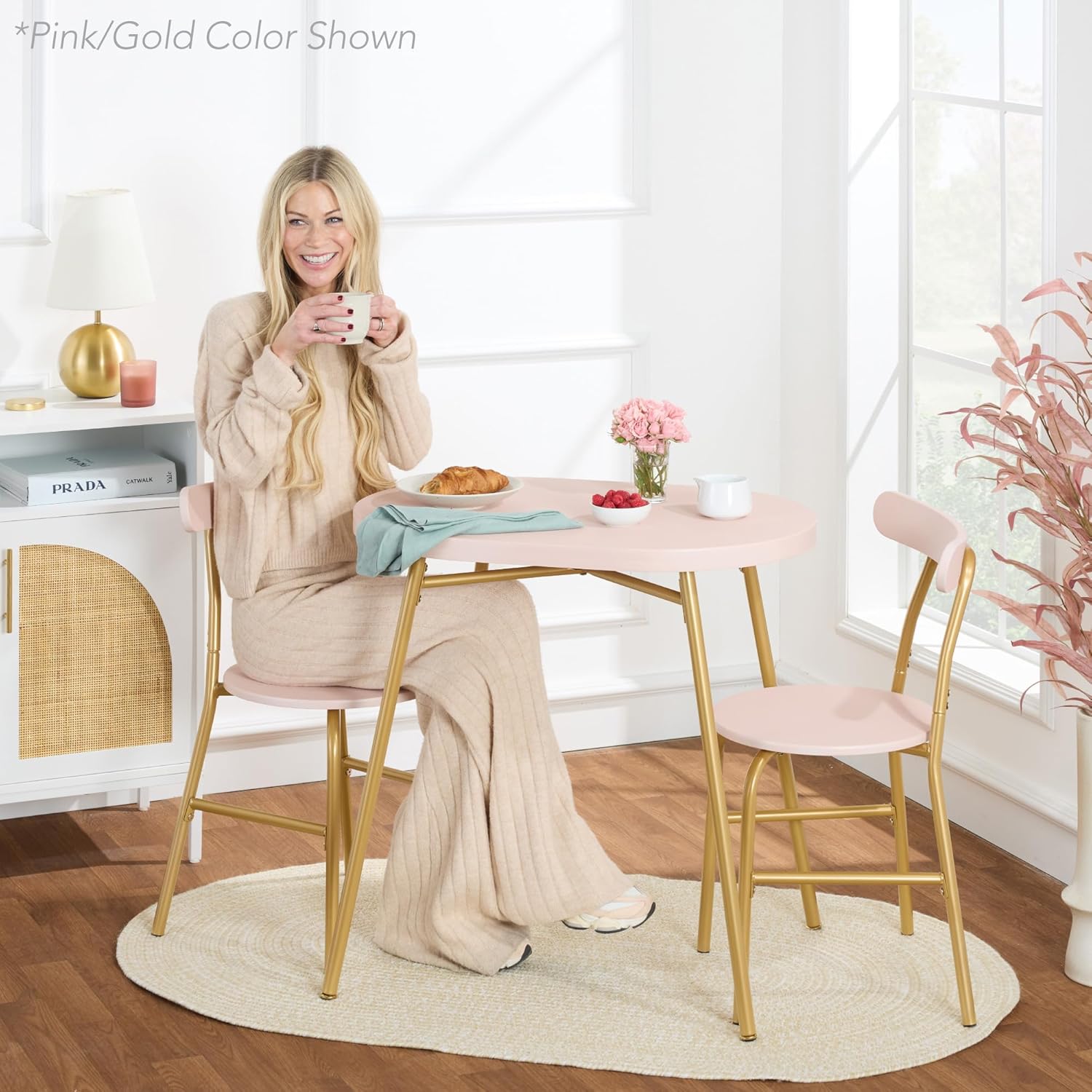 When I welcomed this petite dining set into my home, I was charmed by how effortlessly it blended utility with a whisper of glamour – pink and gold, yes, but expressed with a restraint that feels almost architectural. As I assembled it, each component aligned with a precision that suggested thoughtful engineering rather than mere convenience; the legs met the frame cleanly, the hardware tightened without protest, and the entire structure settled into place with a quiet confidence I always admire in well‑made things. The form is compact yet poised, perfectly suited to smaller spaces where every inch must justify itself, and the curved backrests offer a surprisingly comfortable fit, as though they were shaped with a genuine understanding of the human body. In daily use, the table and chairs feel durable beyond their delicate appearance – stable, balanced, and resistant to the small indignities of life. For its price, the value is undeniable: a functional, accurate, and gracefully proportioned set that brings a touch of beauty to the everyday ritual of dining, without ever insisting upon itself.