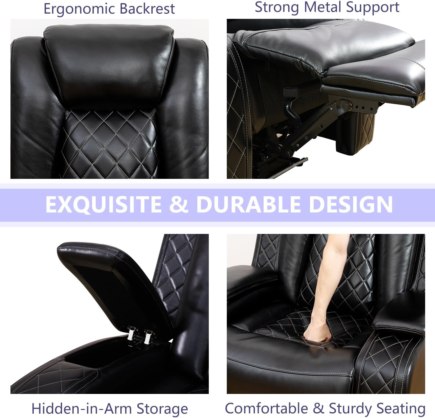 - Power Reclining Mechanism: Each seat includes individual power controls, allowing users to recline effortlessly into their preferred position—perfect for watching TV, reading, or taking a nap without strain.
