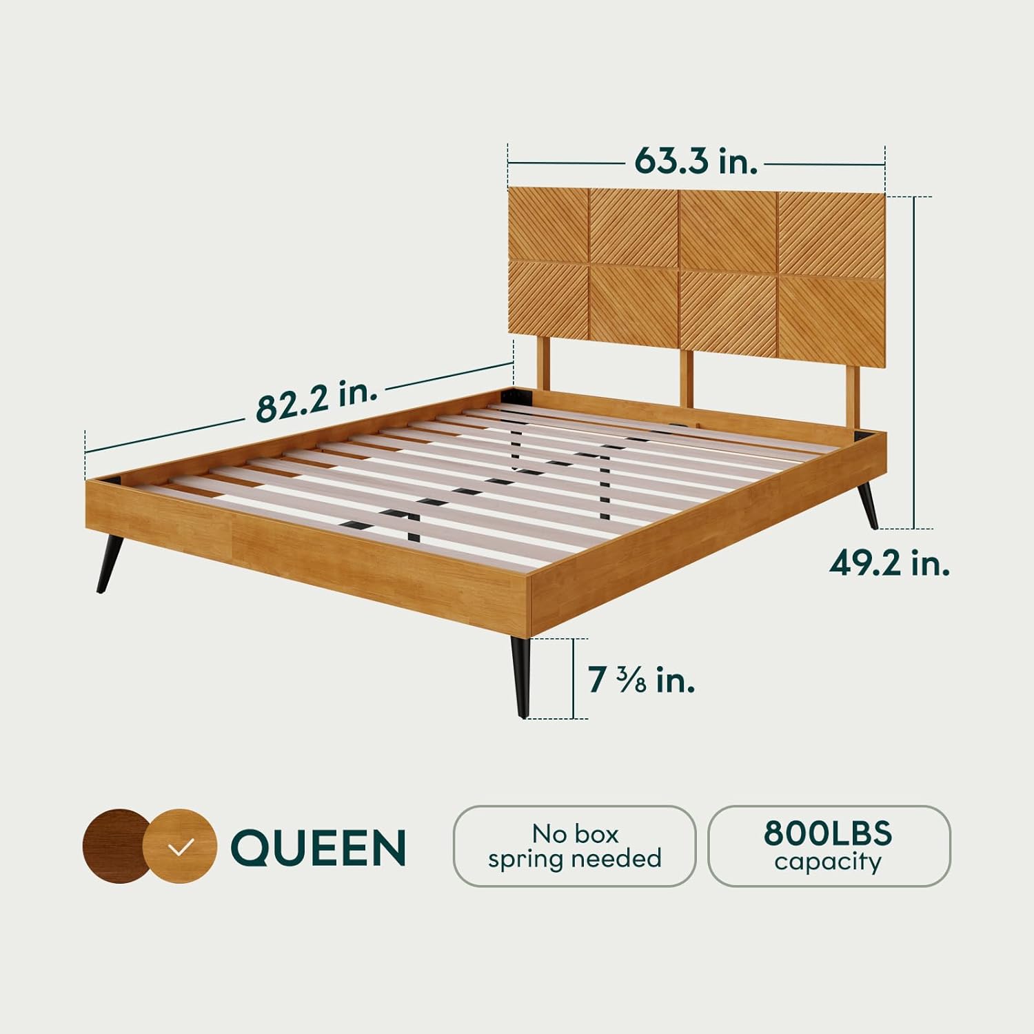 • Mattress Compatibility: All standard queen mattresses (60″ x 80″)