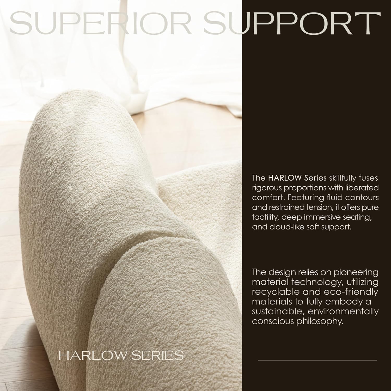 - Curved Boucle Sherpa Fabric: Crafted with a soft sherpa-like boucle texture, the sofa delivers both visual depth and tactile comfort, enhancing its modern aesthetic while providing a cozy feel.