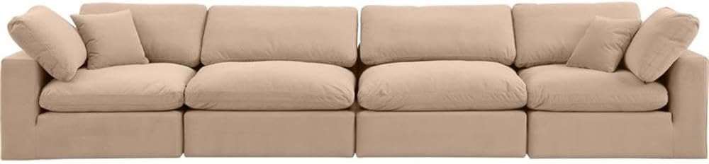This BOWERY HILL 4-Piece Modular Sofa redefines comfortable living with its contemporary design and adaptable structure. Wrapped in soft beige velvet upholstery, it brings both elegance and warmth to any room, seamlessly blending into modern, minimalist, or eclectic interiors. The sofa features generous overstuffed cushions filled with down feather, creating a luxurious sink-in feel that makes every lounging session a pleasure. Its modular construction allows for versatile arrangements, letting you customize the layout to suit your space and lifestyle—whether you’re hosting guests, cozying up with family, or simply enjoying quiet moments at home.