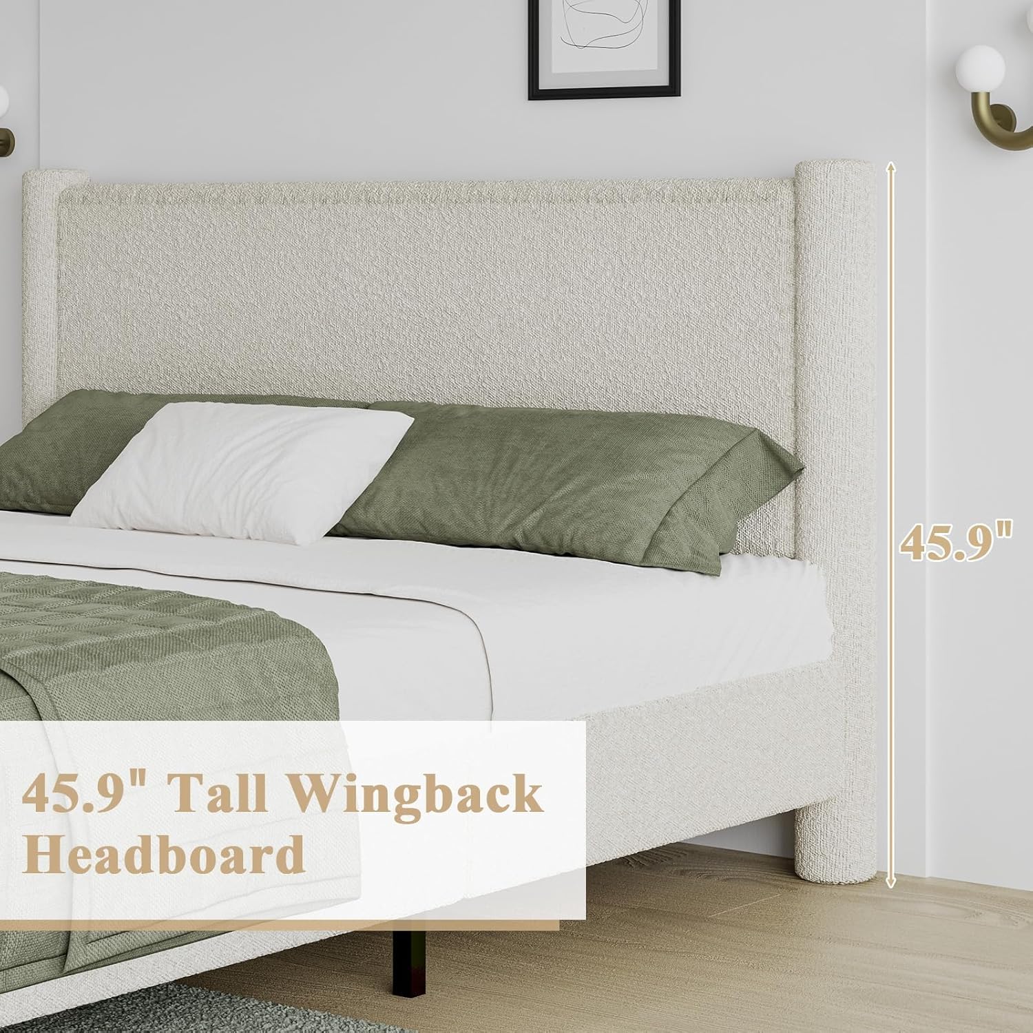 • Boucle Fabric Upholstery: Made from premium boucle material, this bed frame offers a soft, textured surface that adds visual depth and tactile luxury to your bedroom. The cream hue brings warmth and sophistication to any décor.