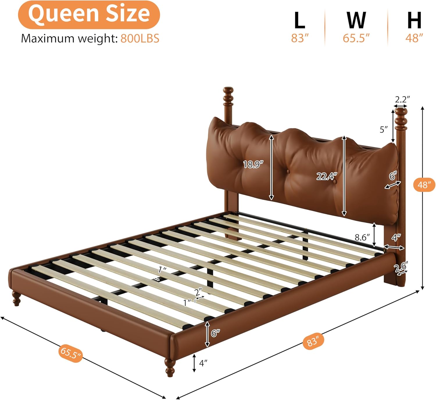 - Queen Size Platform Design: Tailored to fit standard queen mattresses (60” W x 80” L), this bed provides ample sleeping surface while maintaining a low-profile silhouette that enhances room flow and openness.