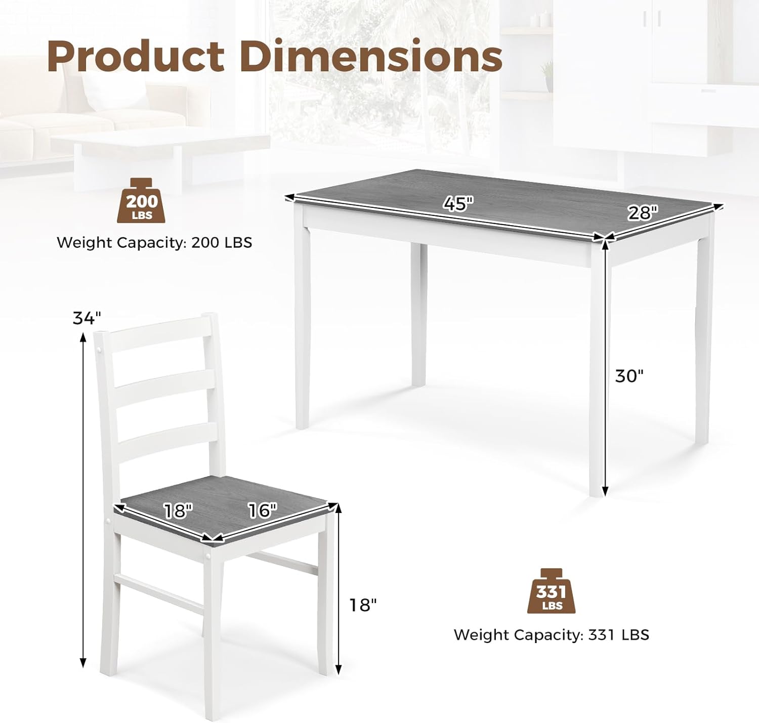 This dining set excels in environments where every inch counts. Its rectangular shape fits snugly against walls or in corners, making it perfect for small kitchens, breakfast bars, urban dining rooms, or even boutique café setups. The sturdy rubber wood frame ensures long-term stability, supporting everyday use from morning coffee routines to weekend family brunches. The neutral finish not only complements a range of interior styles—from minimalist to rustic—but also makes the set easy to integrate into rental units or temporary living situations.