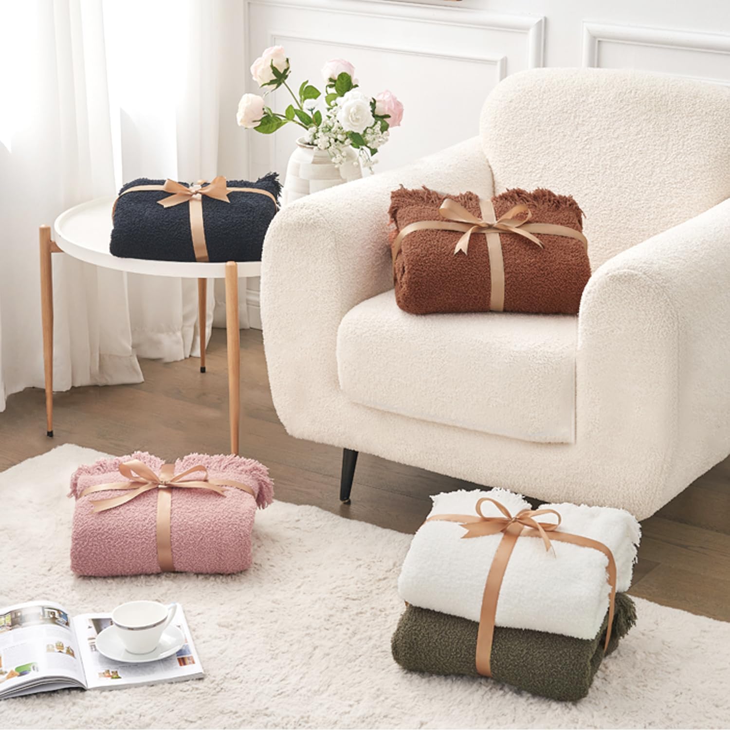 【Super Soft Cozy Blanket】This throw blanket is made of 100% premium microfibre polyester. Breathable yet warm, wrinkle, fade and pilling resistant, its fluffy and super cosy softness brings you maximum comfort all year round.