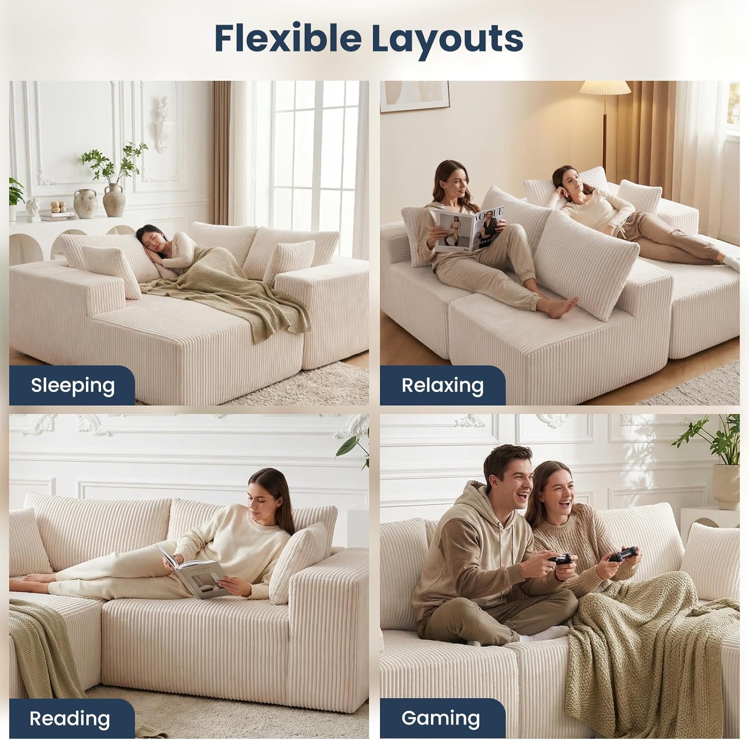 - Modular Sectional Layout: Flexible design adapts to different room sizes and layouts, from compact apartments to larger homes.
