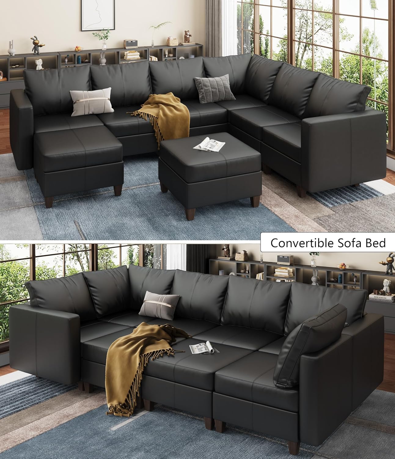 This sectional sofa shines in open-plan spaces where adaptability and aesthetics matter most. Its sleek black faux leather exterior fits seamlessly into contemporary, minimalist, or industrial-style interiors. Thanks to its modular nature, it transitions effortlessly from a quiet reading nook to a social hub during game nights or movie marathons. The inclusion of storage makes it particularly suitable for urban dwellers, small families, or anyone looking to optimize limited space without sacrificing style or comfort.