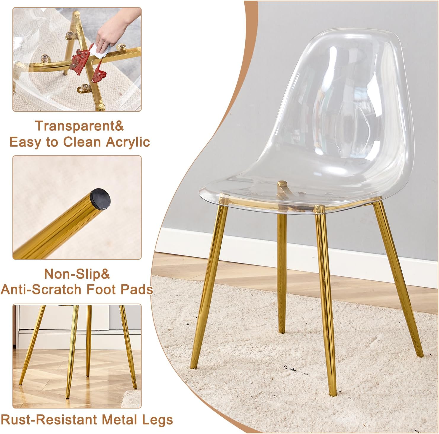 Beyond aesthetics, the Ebullient Glass Dining Table Set offers practical advantages. The tempered glass surface withstands spills and hot dishes better than wood, while acrylic chairs resist chipping and fading—ideal for active households or rental properties. The gold chrome legs lend a polished finish that elevates the look of neutral or bold color schemes alike. Because the set includes all necessary components (table and four chairs), there’s no need to source matching furniture separately.