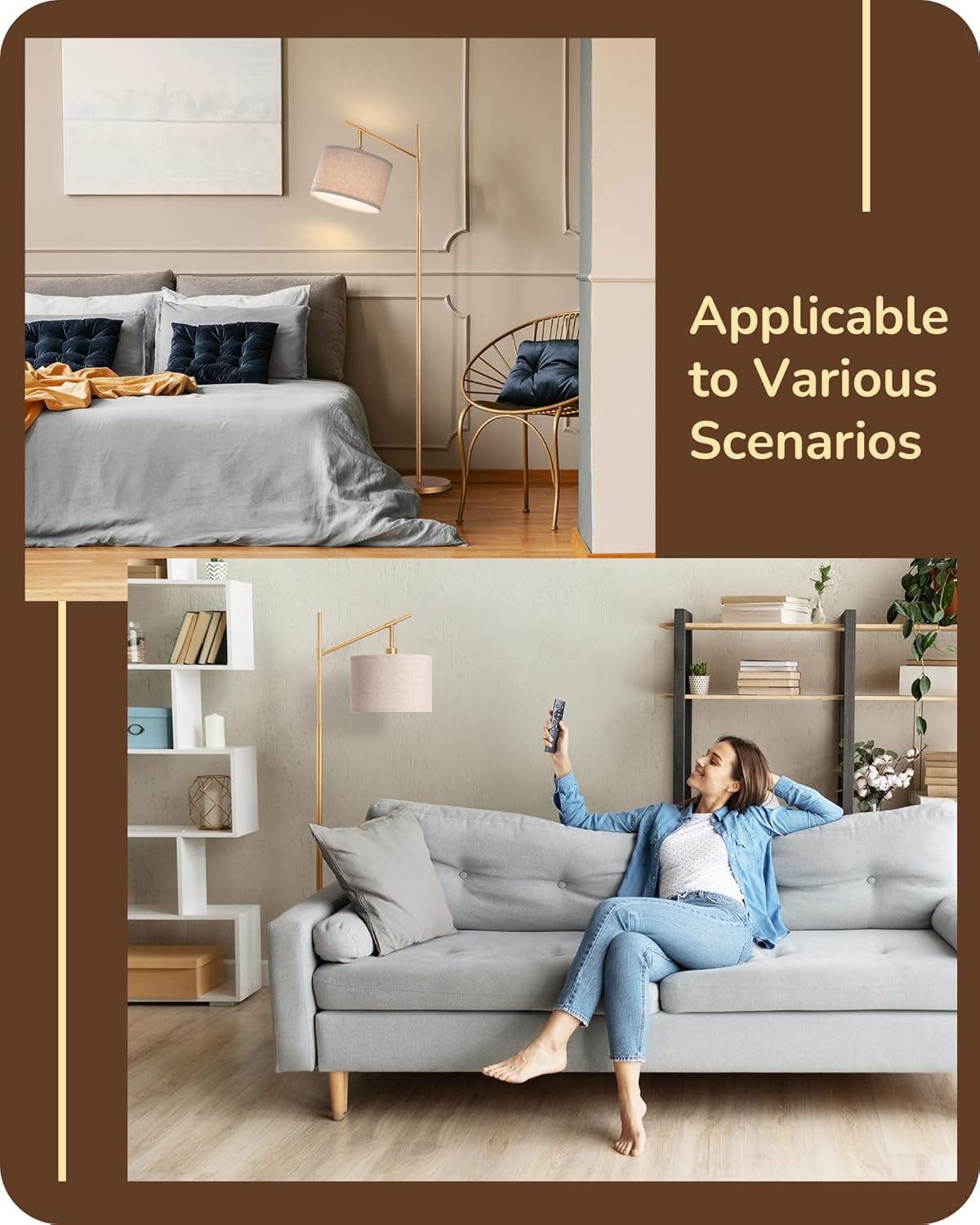 [Modernization & Stability] This exquisite gold brass floor lamp effortlessly harmonizes with the distinct ambiance with modern and traditional style, perfect for bedroom, living room, study room, office, reading corner; crafted with an unwavering solid metal base, it provides safety even amidst the playful presence of children and beloved pets