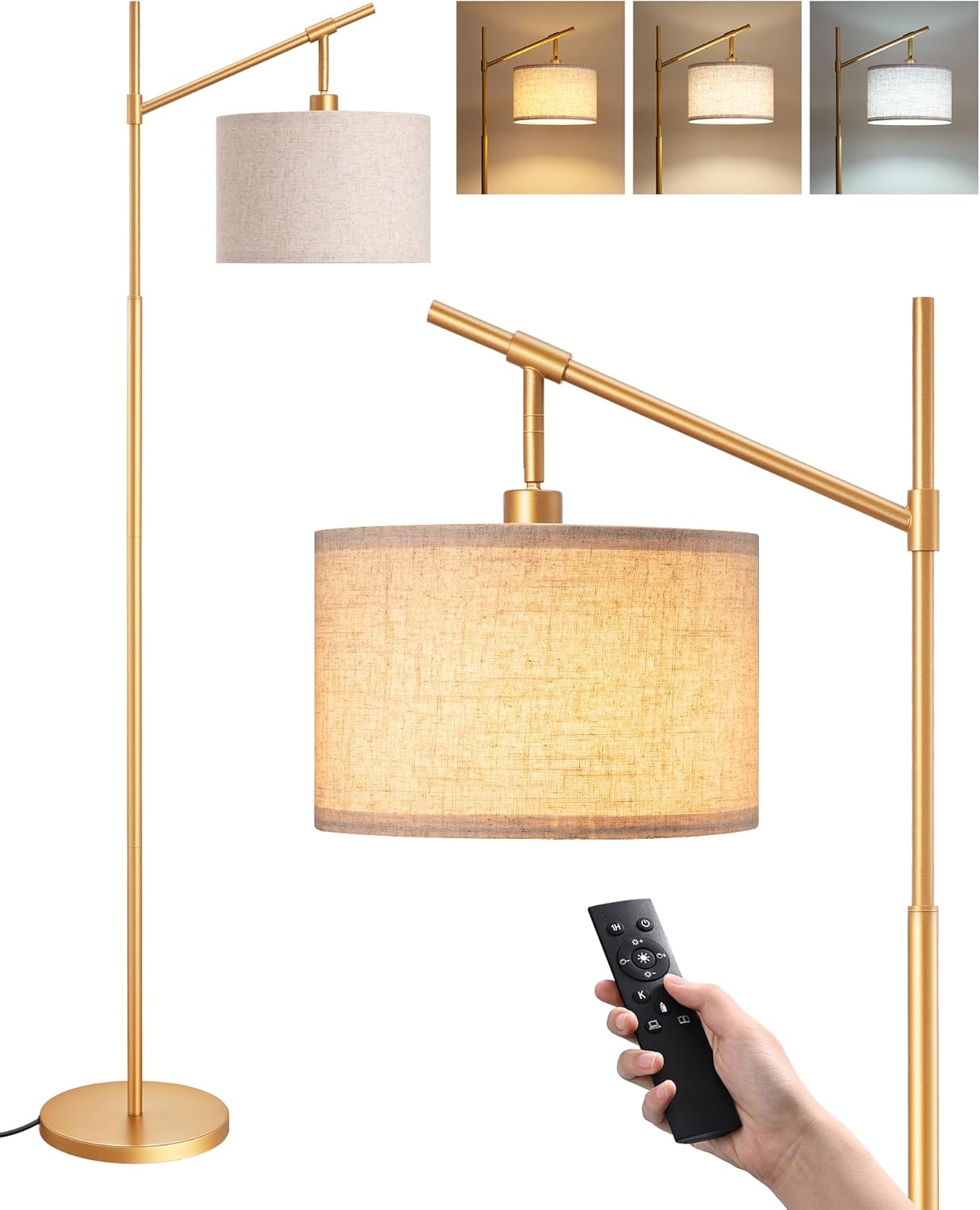 13 reviews for EDISHINE Modern Dimmable Floor Lamp, 63.8″ Standing Lamp with Remote Control, E26 Socket, Arc Floor Lamp with Beige Shade for Bedroom, Living Room, Office, LED Bulb Included (Gold)