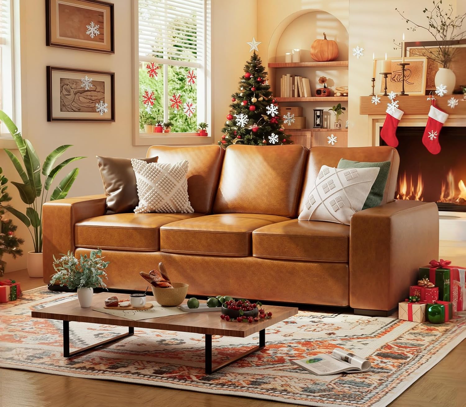 The ELUCHANG 85″ Luxury 3 Seater Sofa Couch redefines comfort and style in modern living spaces. Designed with both functionality and aesthetics in mind, this spacious sofa combines deep seating, premium materials, and thoughtful construction to deliver a luxurious lounging experience. Whether you’re unwinding after a long day or hosting friends for a casual gathering, this sofa provides ample space and support for up to three people. Its sleek brown faux leather finish enhances contemporary interiors, while the detachable cover simplifies maintenance—making it ideal for apartments, living rooms, or lounge areas where durability and elegance matter.