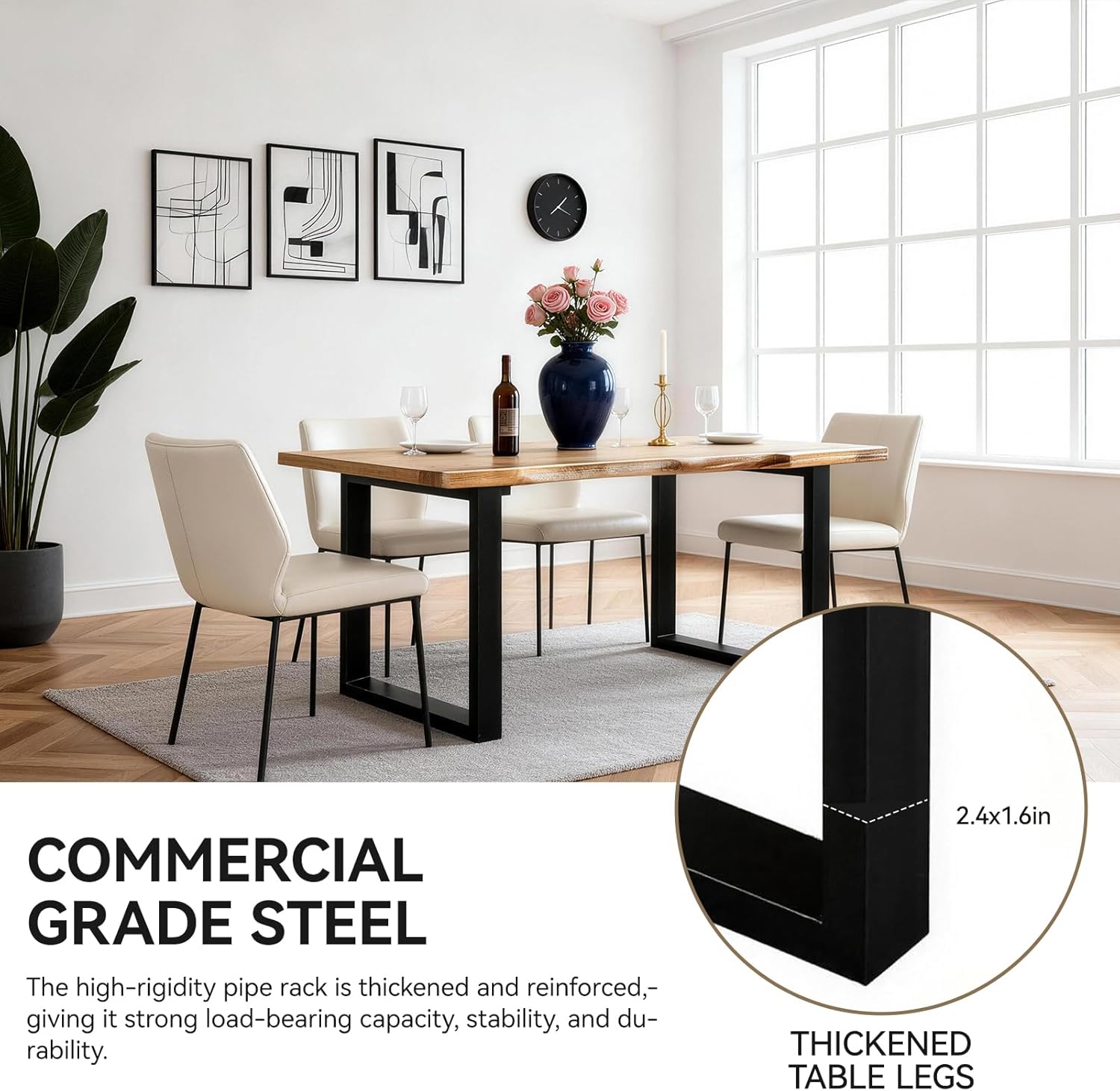 - Sturdy Metal Base Construction: Paired with a heavy-duty metal base, the table delivers exceptional support and balance. The industrial-inspired design not only enhances structural integrity but also complements a range of interior styles—from farmhouse to urban loft.