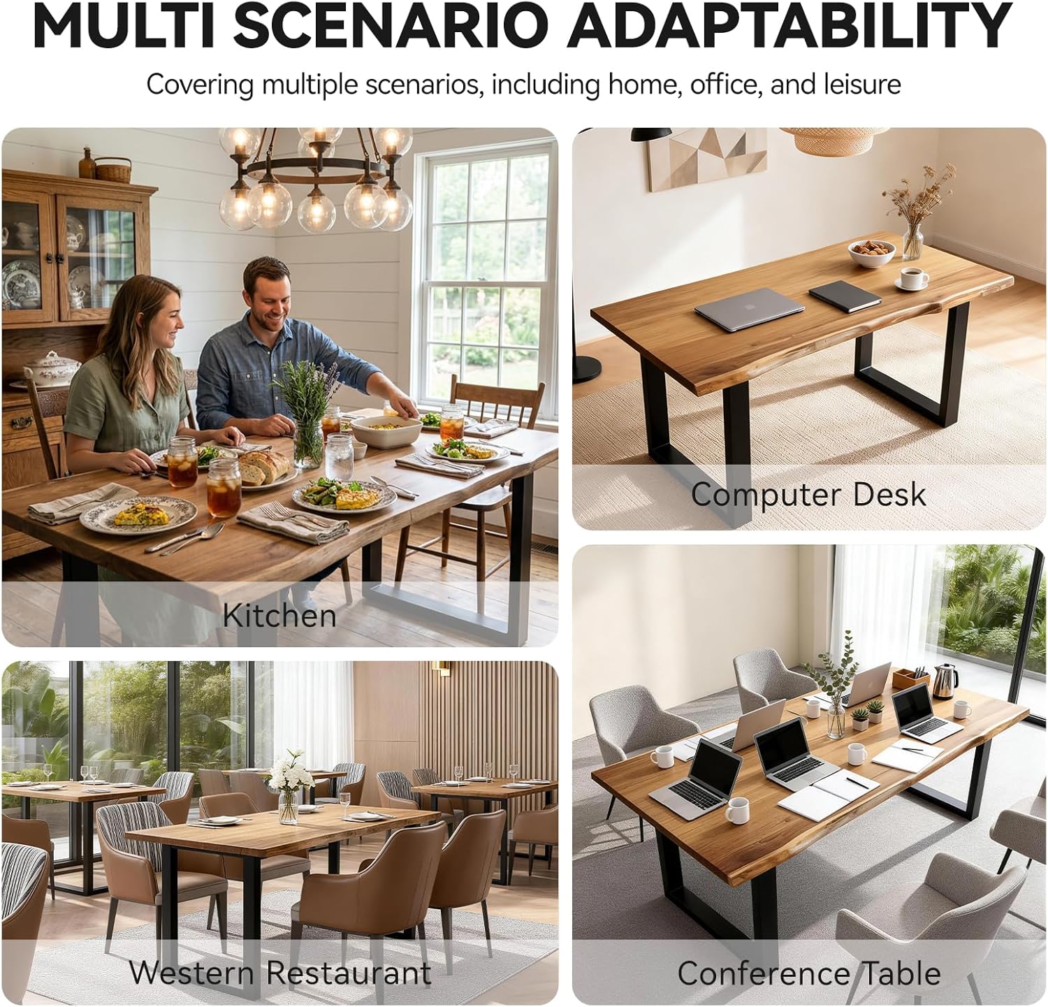 - Versatile Use Across Settings: Beyond the dining room, this table adapts seamlessly to other spaces. Its clean lines and open profile make it suitable for use as a kitchen island, conference desk, or even a statement piece in a living area. The natural wood finish blends effortlessly with existing décor.